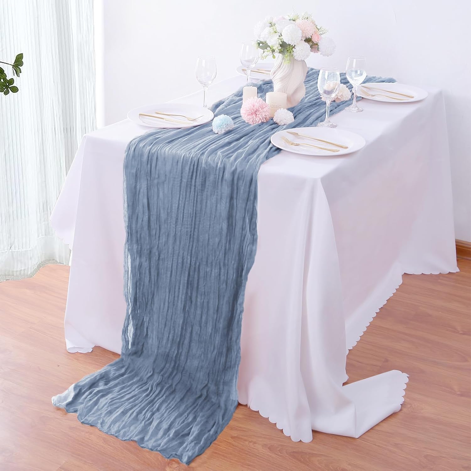 16PCS Dusty Blue Cheesecloth Table Runner 10FT Table Runner Cheesecloth 35x120Inch Boho Gauze Cheese Cloth Table Runner Long Rustic Sheer Table Runners for Wedding Party Baby Bridal Shower Table Decor