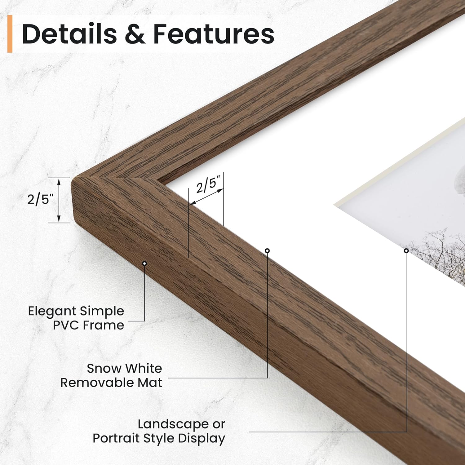 - Vertical & Horizontal Display - Our wall photo frames are versatile and easy to clip and hang. You can mount this plastic picture frame horizontally or vertically, with hanging hardware included. This picture frame maximizes your available space.