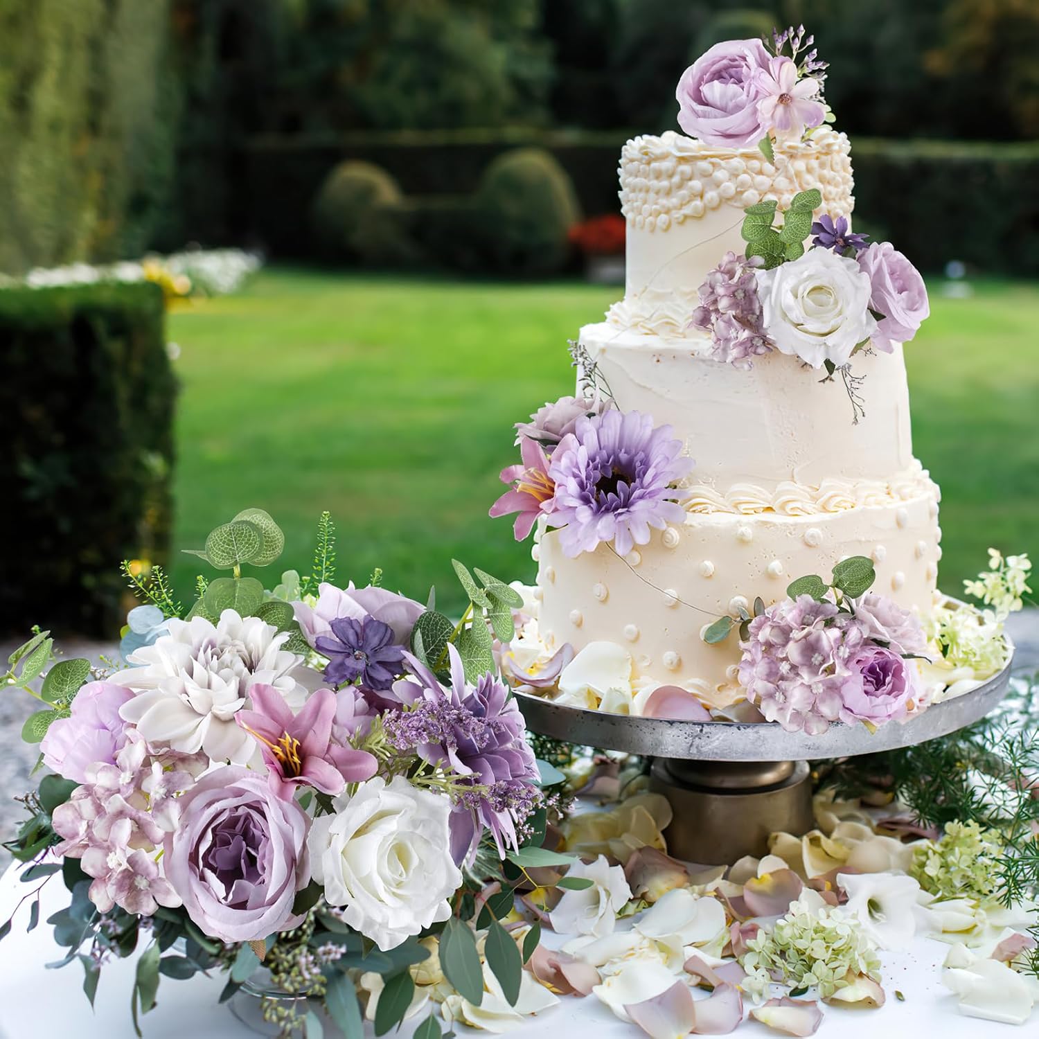 AmyHomie Lavender Artificial Flowers Combo Silk Mix Peony Rose Fake Flowers w/Stem for DIY Wedding Bouquets Centerpieces Arrangements Table Fall Decor Party Bridal Baby Shower Home Decorations
