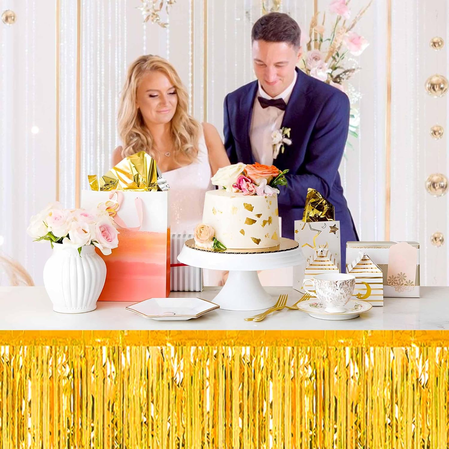 - Multiple Colors: Pair with metallic foil fringe table skirt of different colors to achieve the color combination you want. Show off your creativity by pairing this gold foil wall hanging table skirt with other garland in different colors to fulfill your dream of creating the perfect party scene.