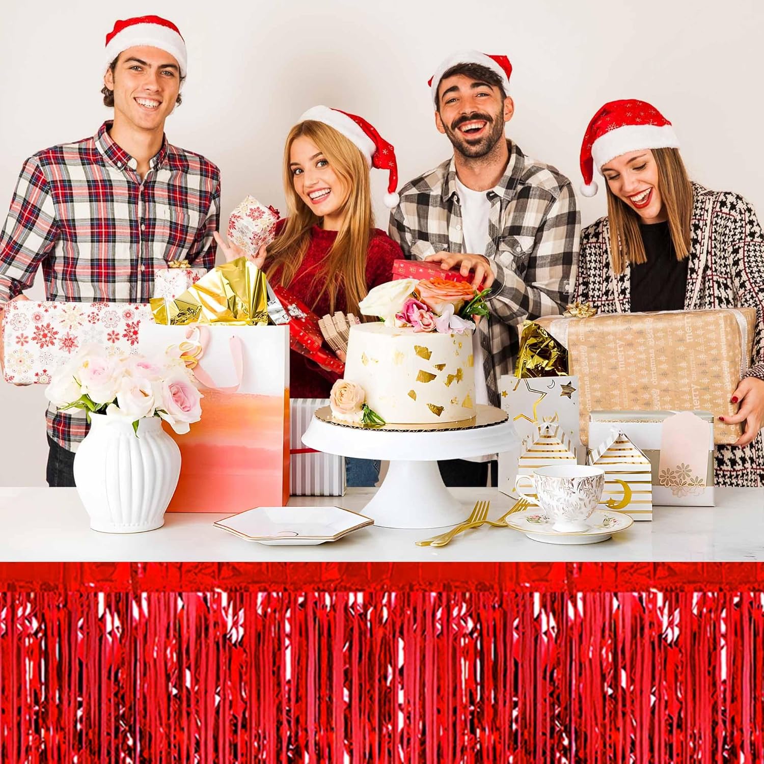 - Multiple Colors: Pair with metallic foil fringe table skirt of different colors to achieve the color combination you want. Show off your creativity by pairing this gold foil wall hanging table skirt with other garland in different colors to fulfill your dream of creating the perfect party scene.