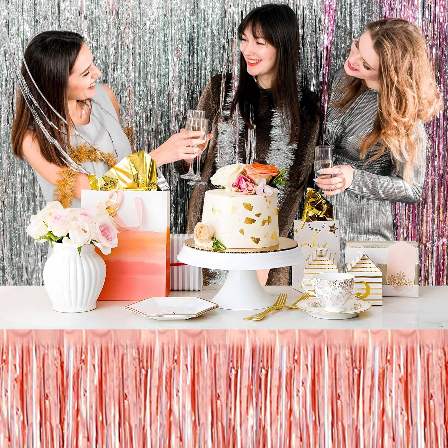 3 Pack 29 x108 Inch Rose Gold Foil Fringe Table Skirts Metallic Banner for Tinsel Streamer Garland Backdrop for Parade Floats Mother's Day, Graduate, Birthday, Wedding Party Decoration