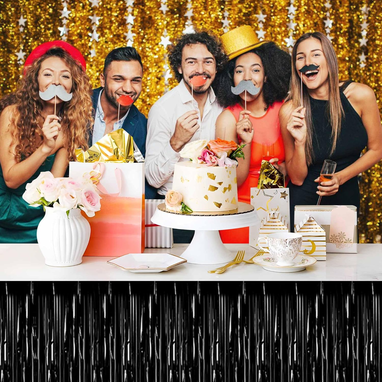 - Wide Application: Metallic tinsel foil fringe table skirts ideal for various themed party decorations, such as hotel banquet, parade float, hollywood party, homecoming, christmas, birthday, halloween, new year eve, bachelorette, engagement, anniversary, bridal shower, baby showers, graduations and more. They are also suitable for photo booth backdrops, bar, stage background, disco, etc
