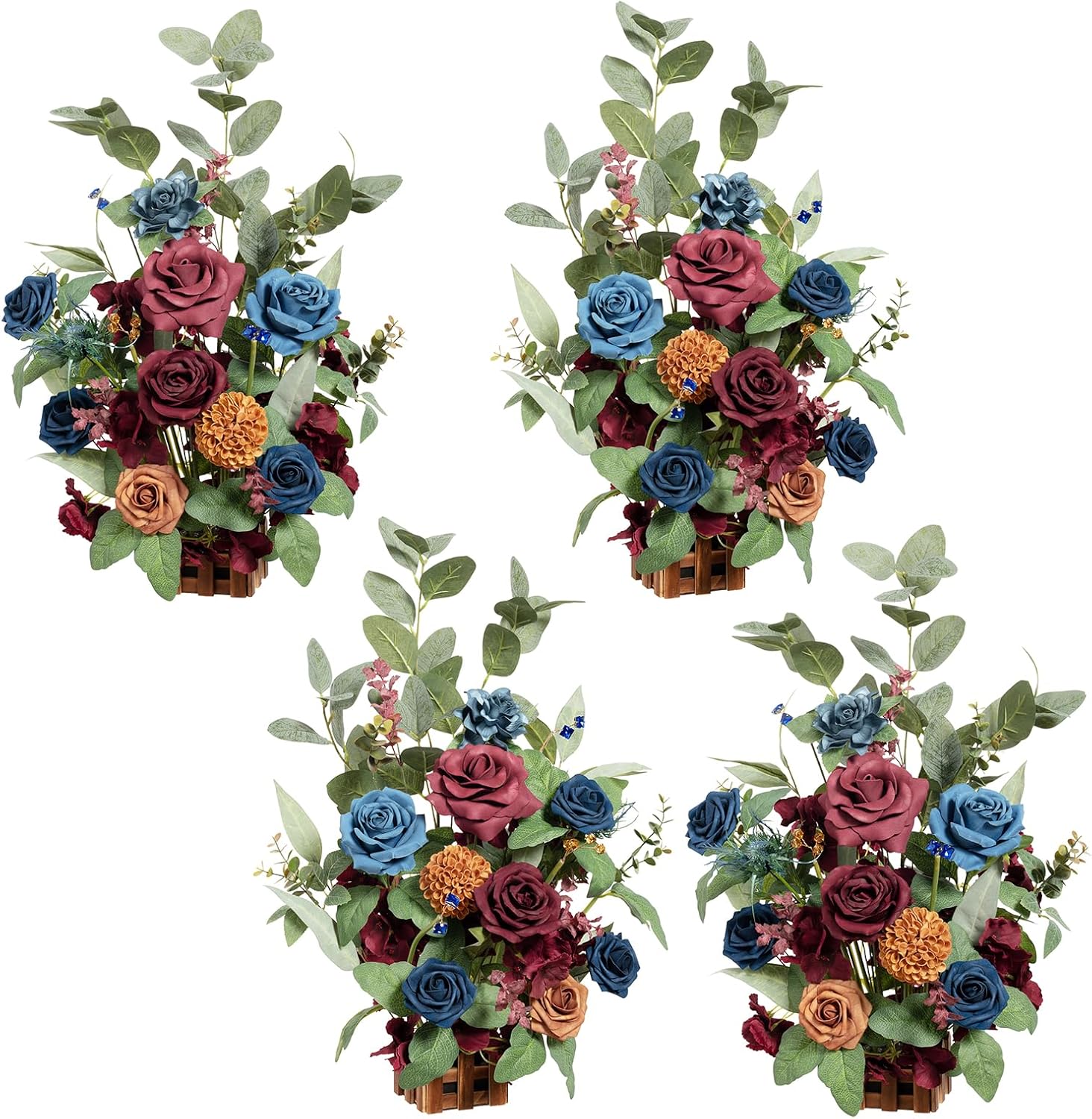 - WEDDING FLORAL DECOR DETAILS: Free-standing flower arrangement x 4, helps to create a romantic fall, burgundy & navy blue or winter wedding. These pre-made floral arrangements are perfect for decorating the wedding aisle, welcome entrance, table centerpieces, and wedding arch decor.