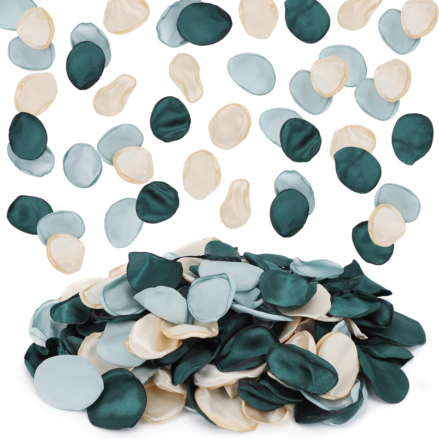 Suream Flower Girl Petals, 300 Pcs Rose Petals Decorations, Silk Flower Petals for Wedding, Fake Flower Petals for Bridal Showers, Wedding Decorations, Sweetheart Table Decor(Dark Green)