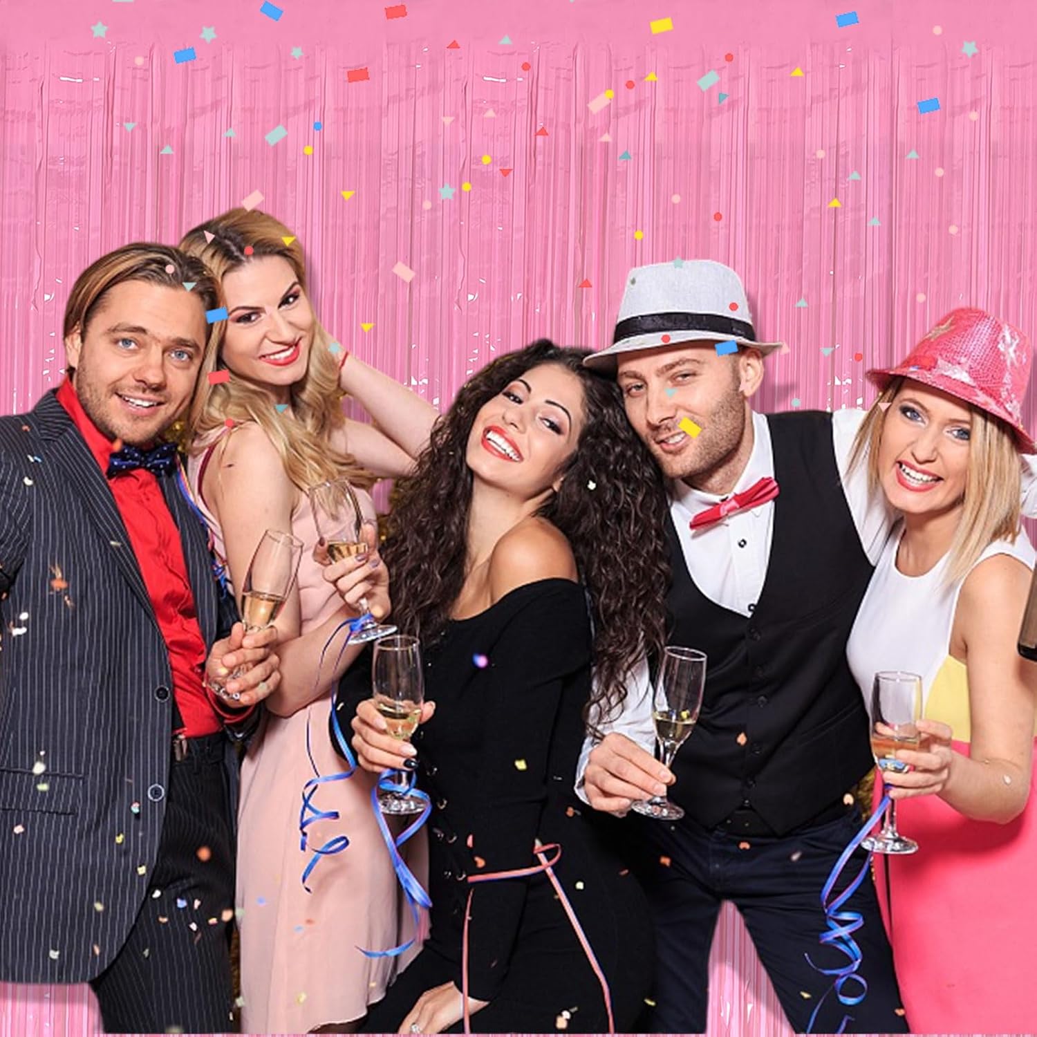 10 Pack Party Backdrop Decorations Pink Tinsel Curtain Party Backdrop Foil Fringe Birthday Decorations Photo Booth Streamer Backdrop Pink Theme Bachelorette Graduation Party Decorations