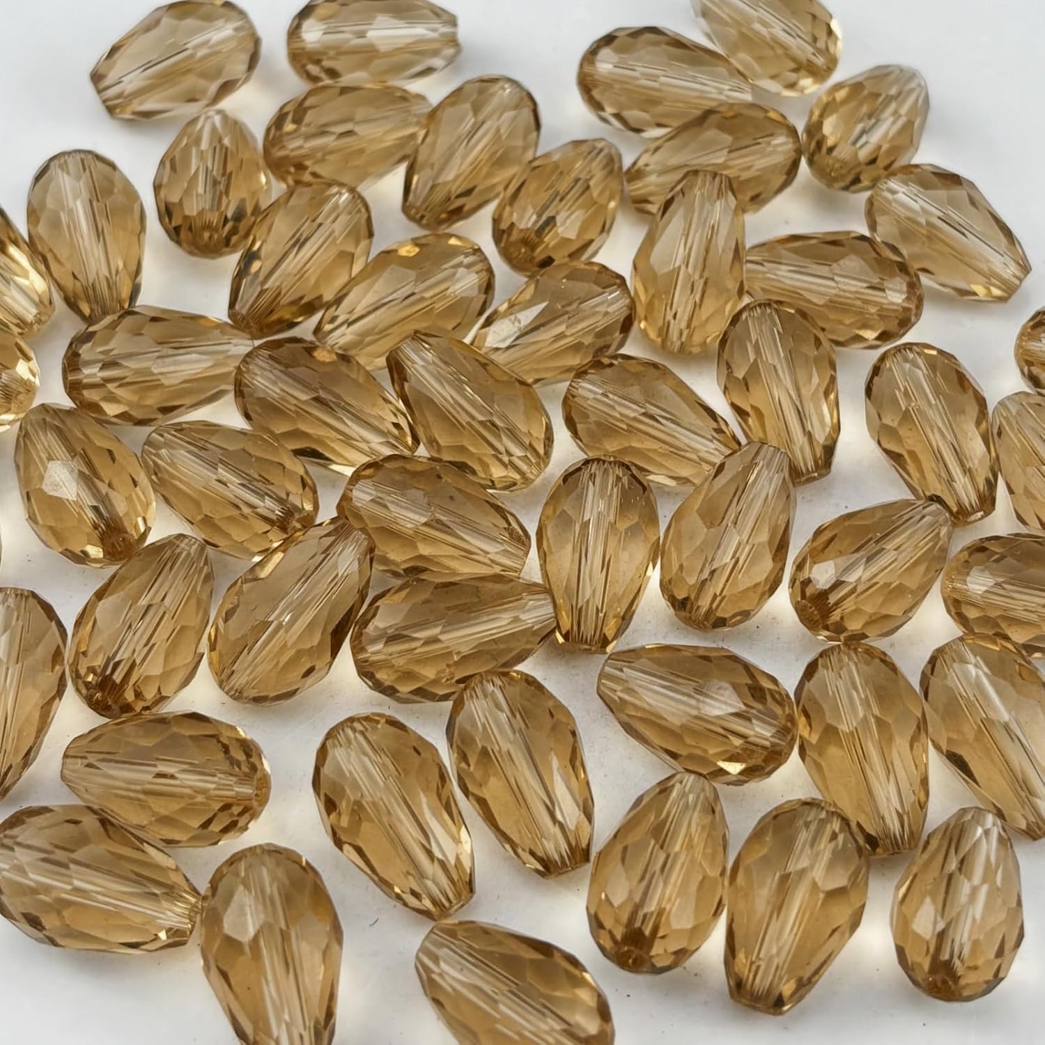 130pcs 6x8mm Teardrop Crystal Glass Beads for Jewelry Making, Faceted Vertical Hole Teardrop Glass Spacer Beads for Wind Chimes Bracelet Earring Necklace DIY Craft(Champagne)