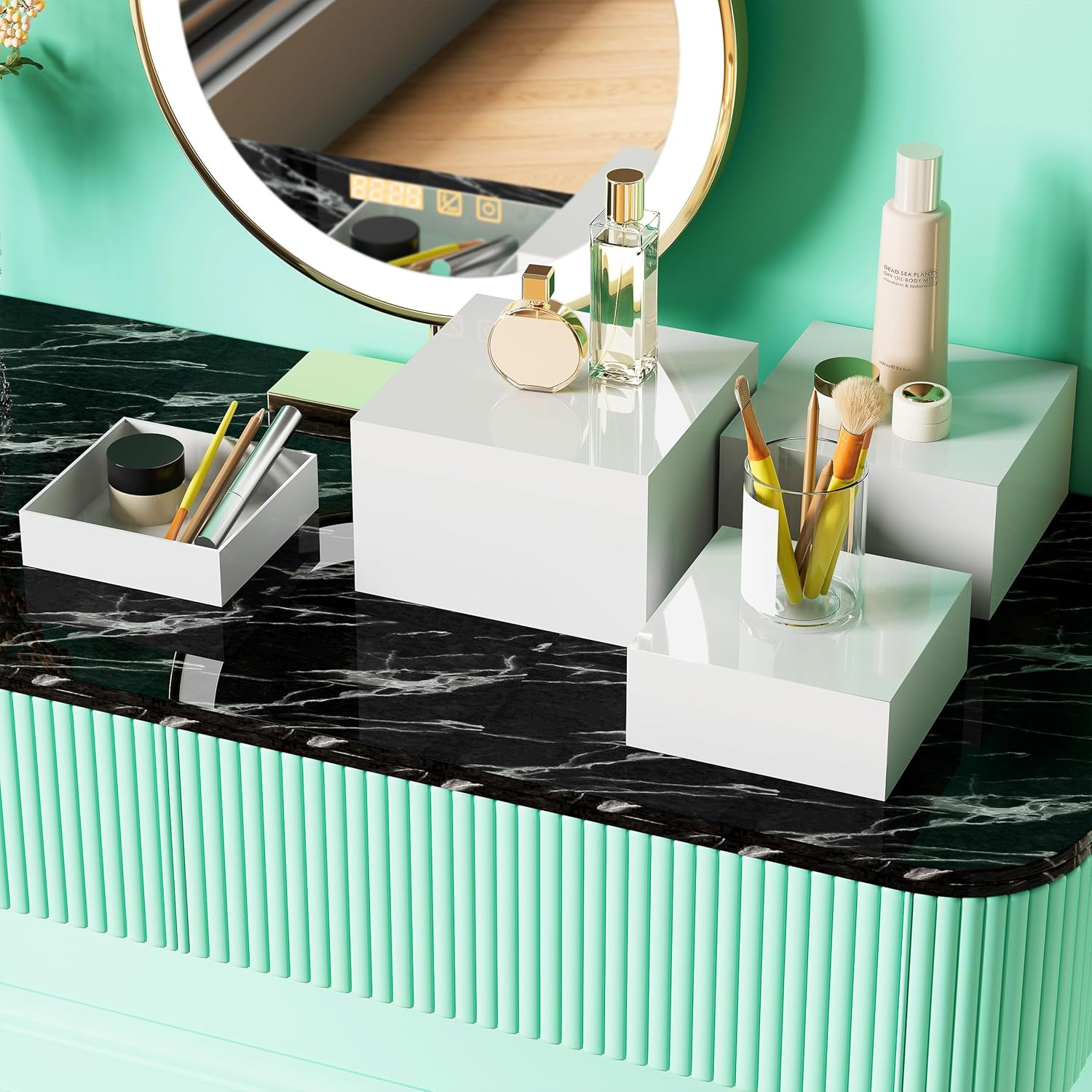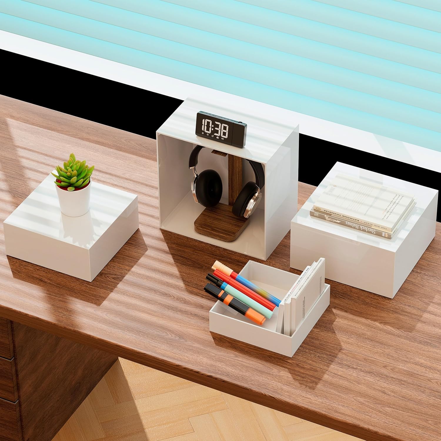 - Multi-Purpose – These white acrylic risers can be used as stands for food platters, jewelry, crafts, or retail displays. With a simple flip, they transform into storage boxes, perfect for holding small household items such as keys, remotes, books, stationery, makeup products, sewing supplies, phones & chargers, small tools, craft supplies, jewelry, and more. Ideal for use in the living room, kitchen, bathroom, bedroom, mudroom, and beyond.