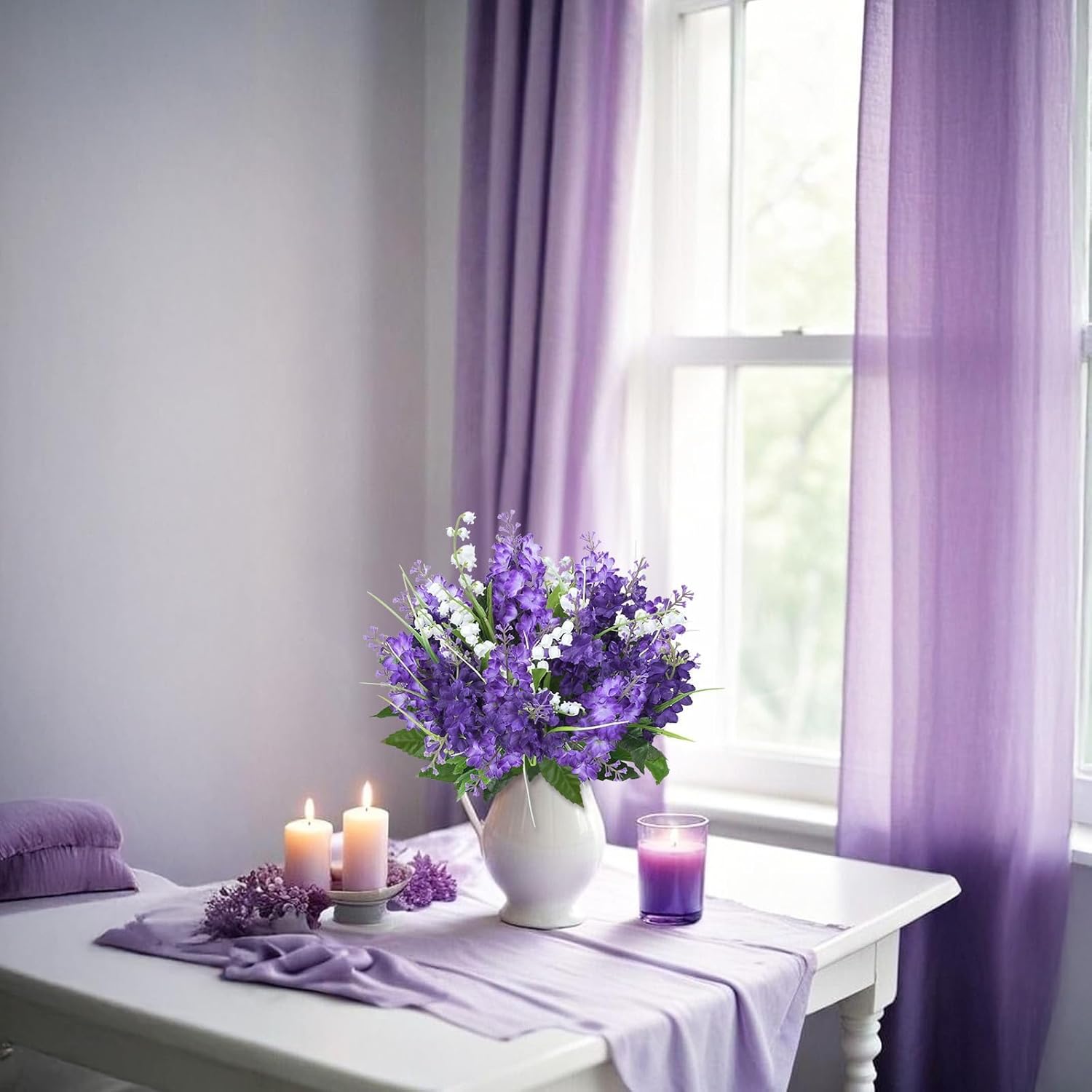 - [Realistic Purple Flowers]: artificial Lilac flowers in this bouquet are crafted with meticulous attention to detail, ensuring a highly realistic appearance. Their petals are lush, capturing the essence of the real flower. The purple hues are vibrant and inviting, adding a pop of color to any space while maintaining a sophisticated charm.
