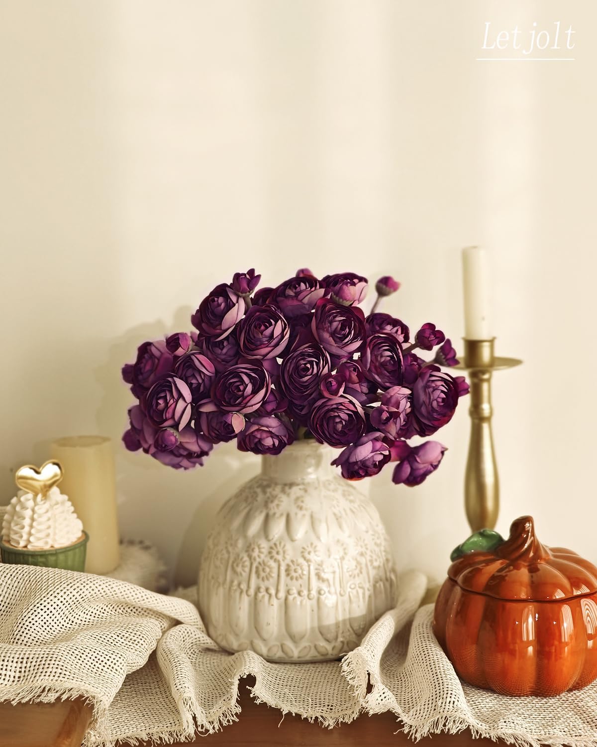 Letjolt Ranunculus Artificial Flower 18 Pcs Purple Silk Ranunculus Wedding Bouquet Engagement Centerpieces Arrangements Bridal Shower Decorations Home Decor, Purple
