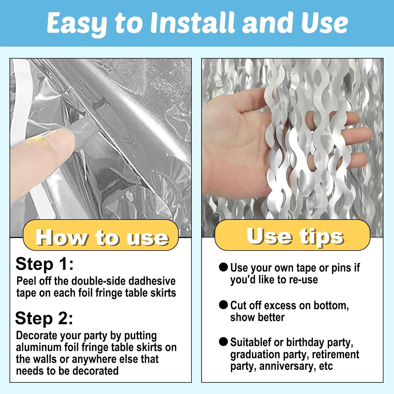 - Beautiful decoration: you can use these tinsel fringe table skirt to decorate a classroom, the stage for school program, a homecoming float, a wedding decoration, birthday party, Disco party, baby shower, halloween, christmas, new year's eve, bachelorette party, anniversary Memorial, Hollywood Party, independence Day, Carnival Party, Bridal Shower, Graduation and more.