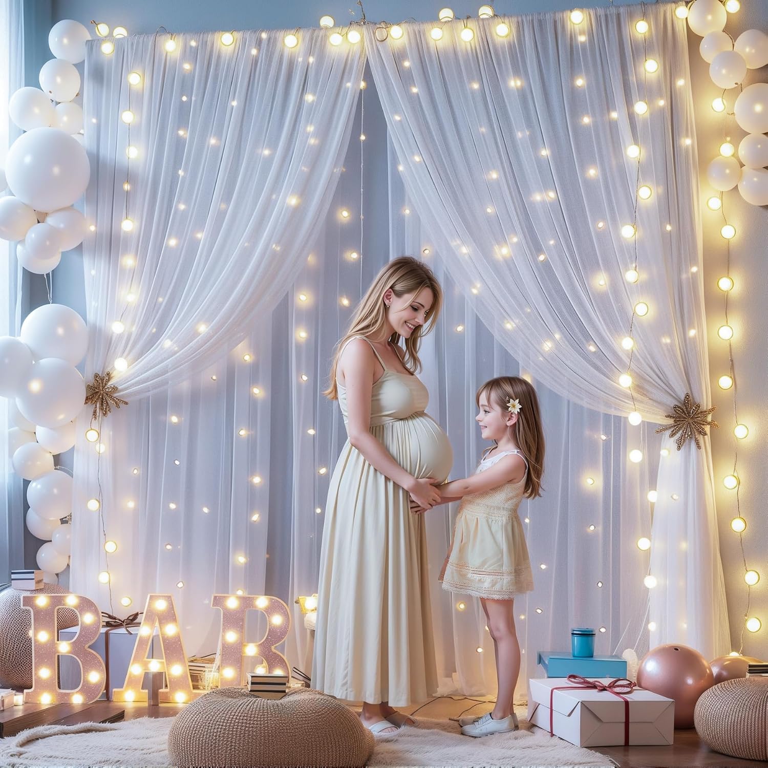 - White Sheer Backdrop Curtain with Lights Occasions: Perfect for weddings, baby showers, bridal showers, birthday parties, anniversaries, New Year celebrations, family gatherings, and other occasions to create a memorable photo backdrop. The tulle backdrop curtains can be reused many times. For a fuller effect, consider purchasing multiple sets to use together
