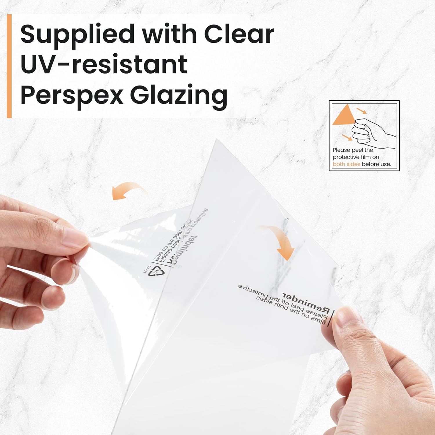 - High-Quality: Our 11x14 picture frame is made of environmentally friendly plastic, strong and durable. With a moisture-proof backplane design, the angle is hand-polished to stop scratching your skin. Use a polished polycarbonate board front to see your photos clearly.