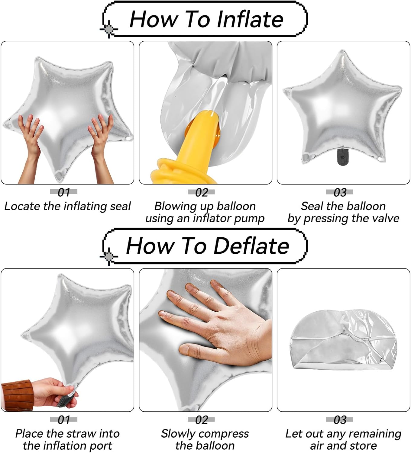 - 【Effortless Setup】Inflate with helium or air using a pump and secure easily for polished decor. These Star Foil balloons are simple to assemble and reusable for multiple events, making decorating quick and effortless.