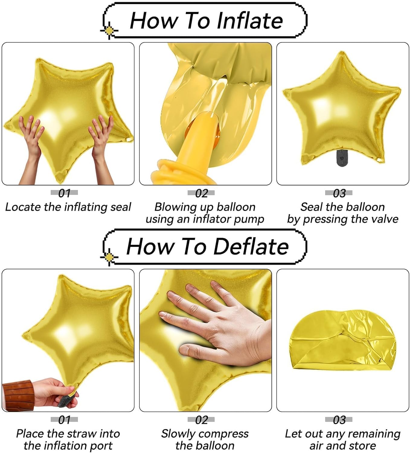 - 【Effortless Setup】Inflate with helium or air using a pump and secure easily for polished decor. These Star Foil balloons are simple to assemble and reusable for multiple events, making decorating quick and effortless.