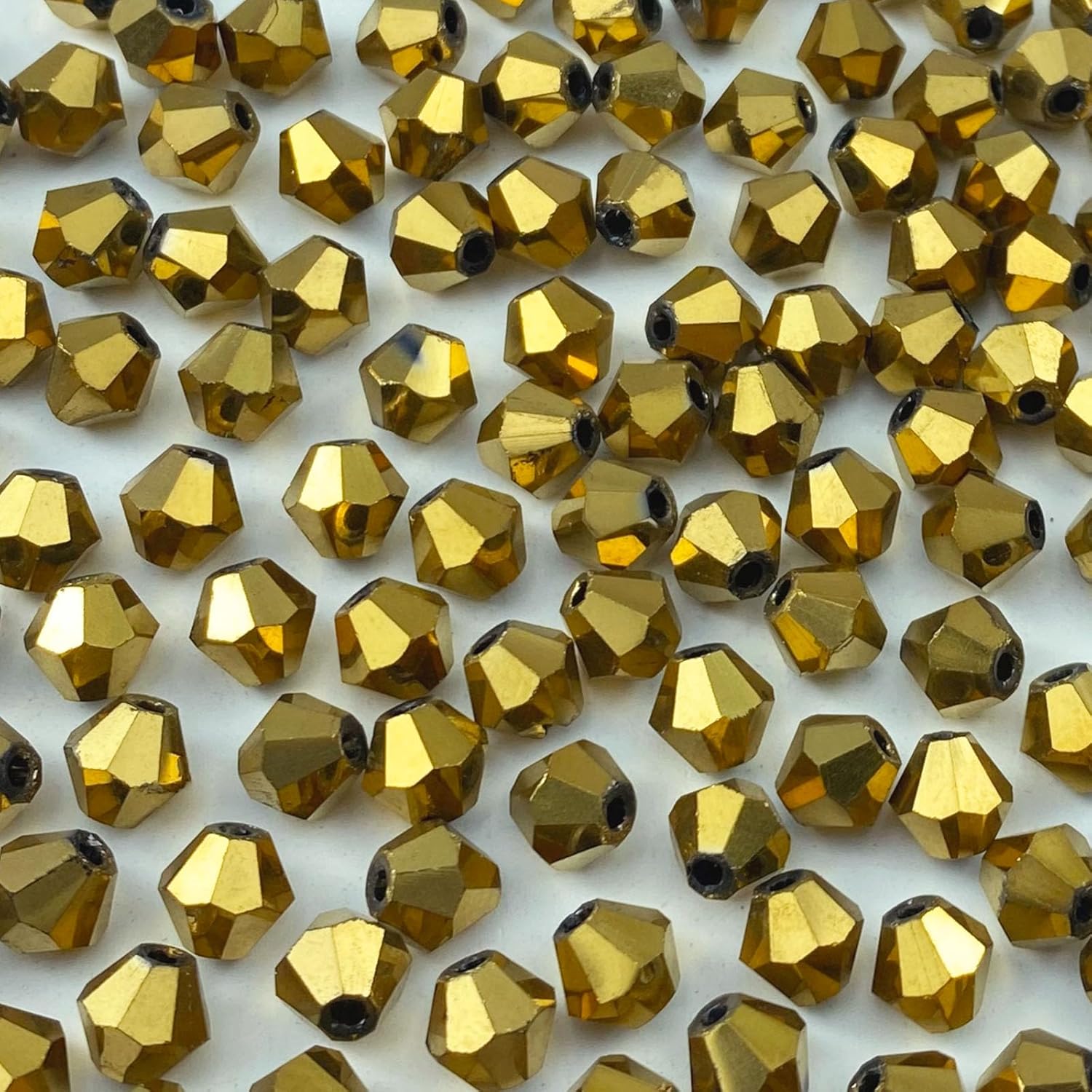 100pcs 8mm Bicone Crystal Glass Beads Loose Spacer Beads Faceted Craft Beads for Jewelry Making DIY Necklace Bracelet Earring Wind Chimes Suncatchers Ornamen(Mine Gold)