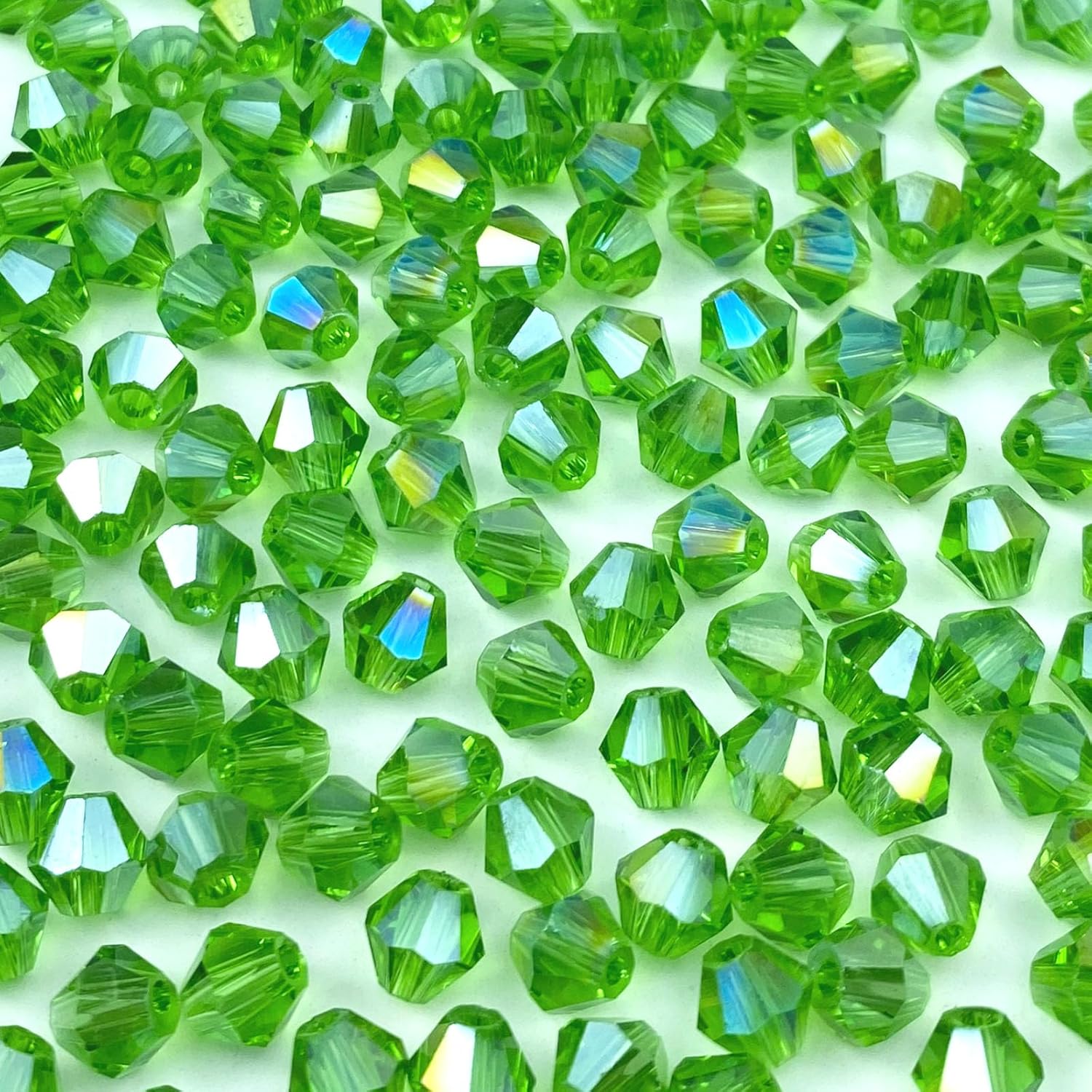 100pcs 8mm Bicone Crystal Glass Beads Loose Spacer Beads Faceted Craft Beads for Jewelry Making DIY Necklace Bracelet Earring Wind Chimes Suncatchers Ornamen(Grass Green AB)