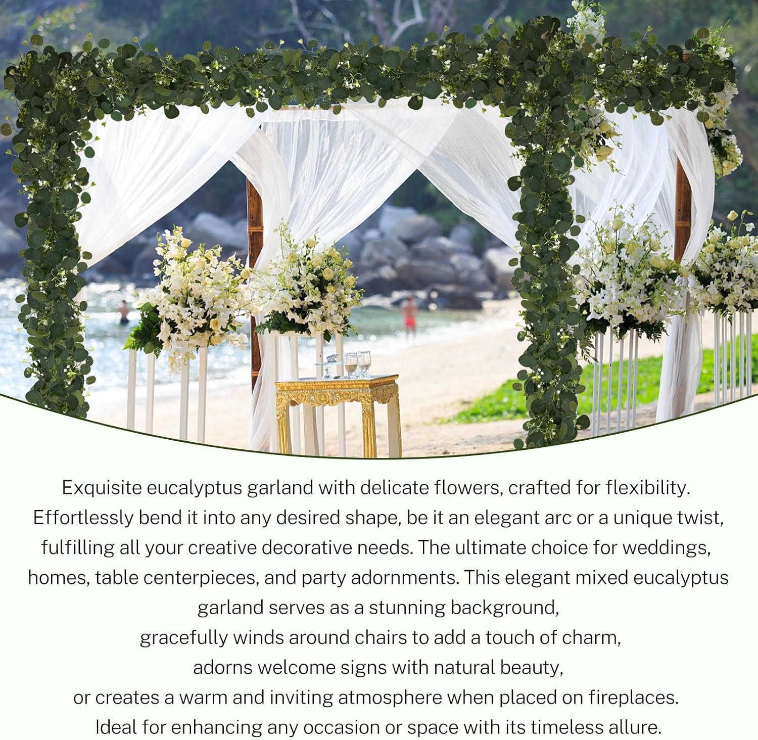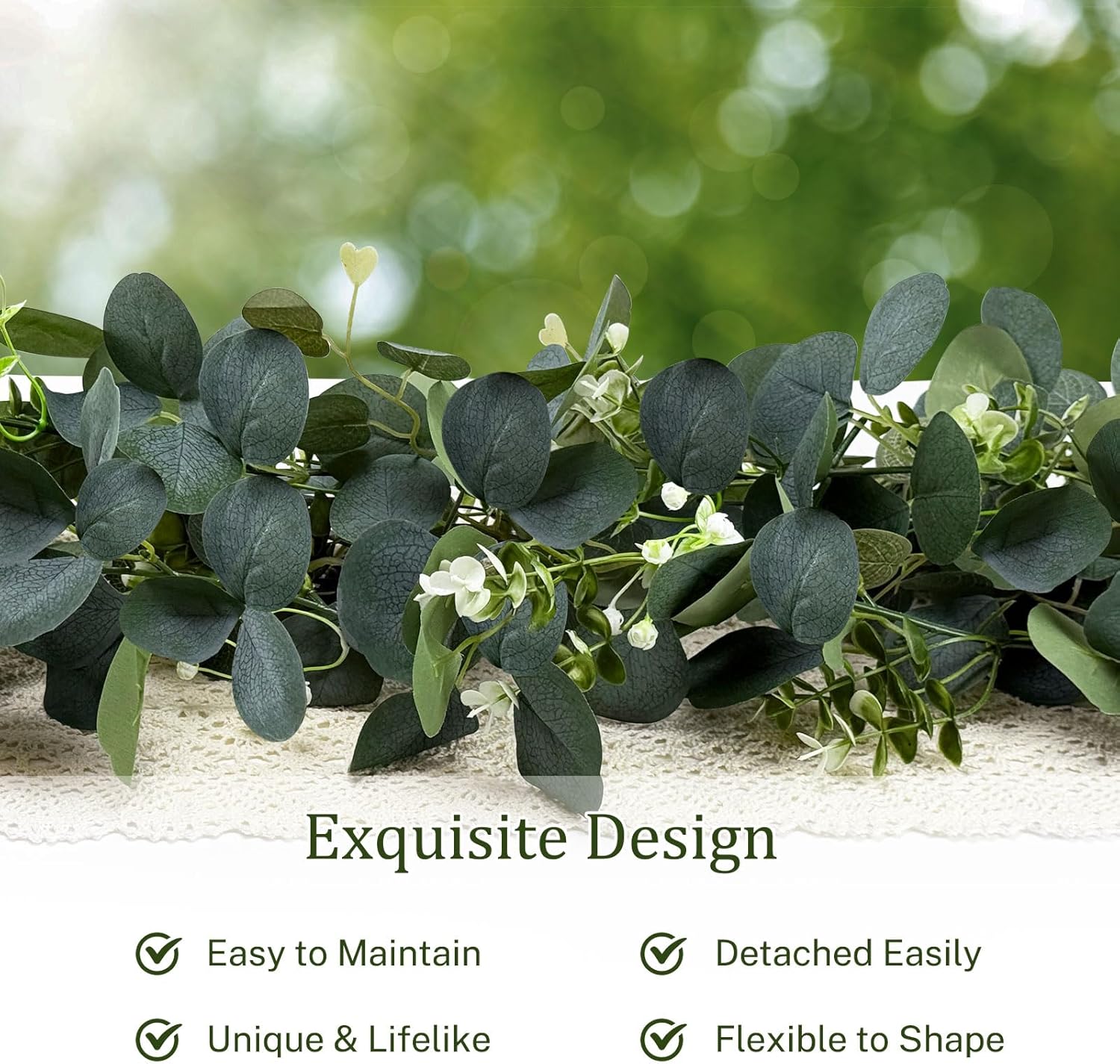 - 【Multi-Functional Decorative】Enhance your space with this versatile greenery garland decor! Perfect for table runners, mantle, centerpieces, wedding flower arches, wall decorations, and more. Whether you're looking to create a romantic atmosphere or add a touch of beauty to your life, this eucalyptus decor is the perfect choice for any setting.