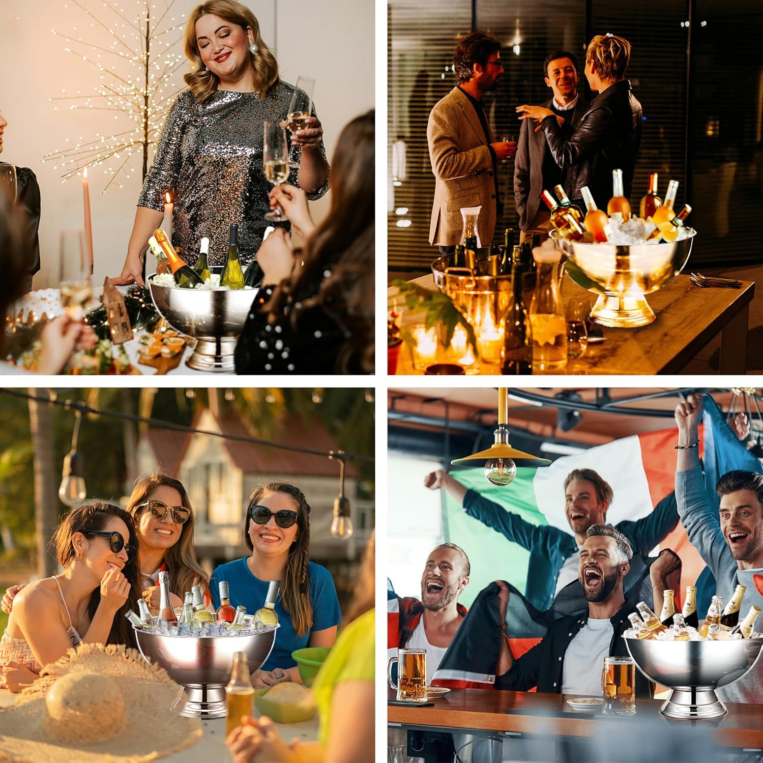 - VERSATILE USE: These ice buckets are adaptable for various settings. Useful as stainless steel bowls or serving trays, they are perfect as punch bowls, cocktail ice buckets, or decorative pieces like jewelry dishes