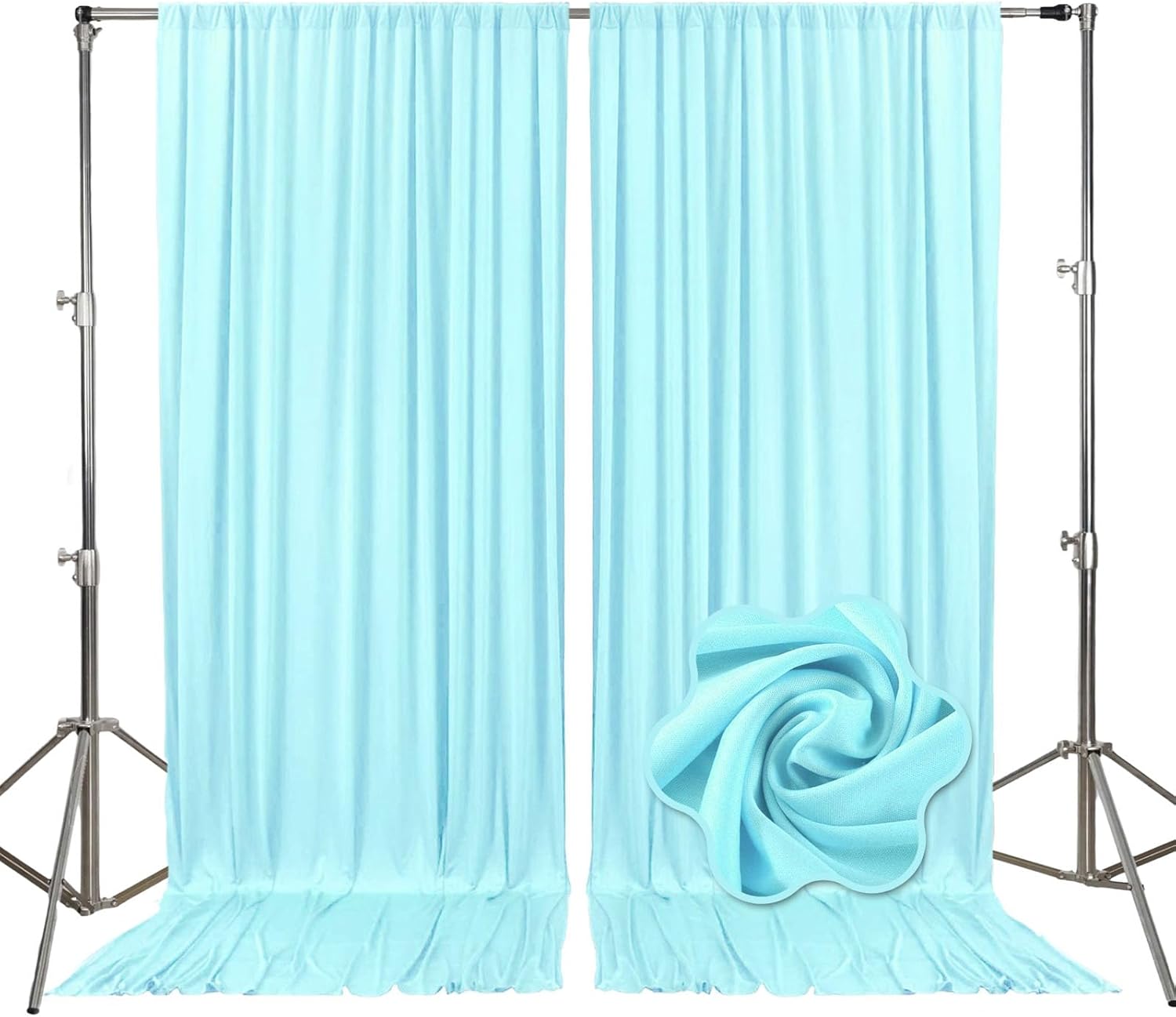 10ft x 10ft Lake Blue Backdrop Curtains for Parties, Fabric Satin Background Curtain with Rod Pockets for Weddings, Birthday, Baby Shower, Photography, Graduation Party Backdrop Drapes, 2 Panels