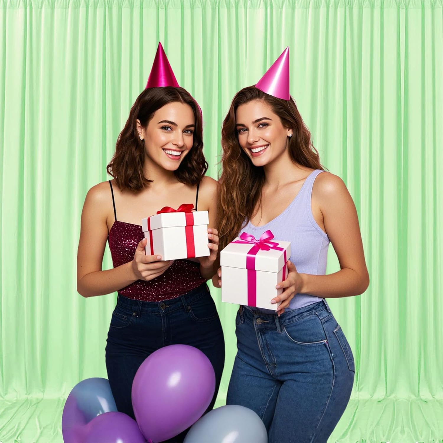 10ft x 10ft Light Green Backdrop Curtains for Parties, Fabric Satin Background Curtain with Rod Pockets for Weddings, Birthday, Baby Shower, Photography, Graduation Party Backdrop Drapes, 2 Panels