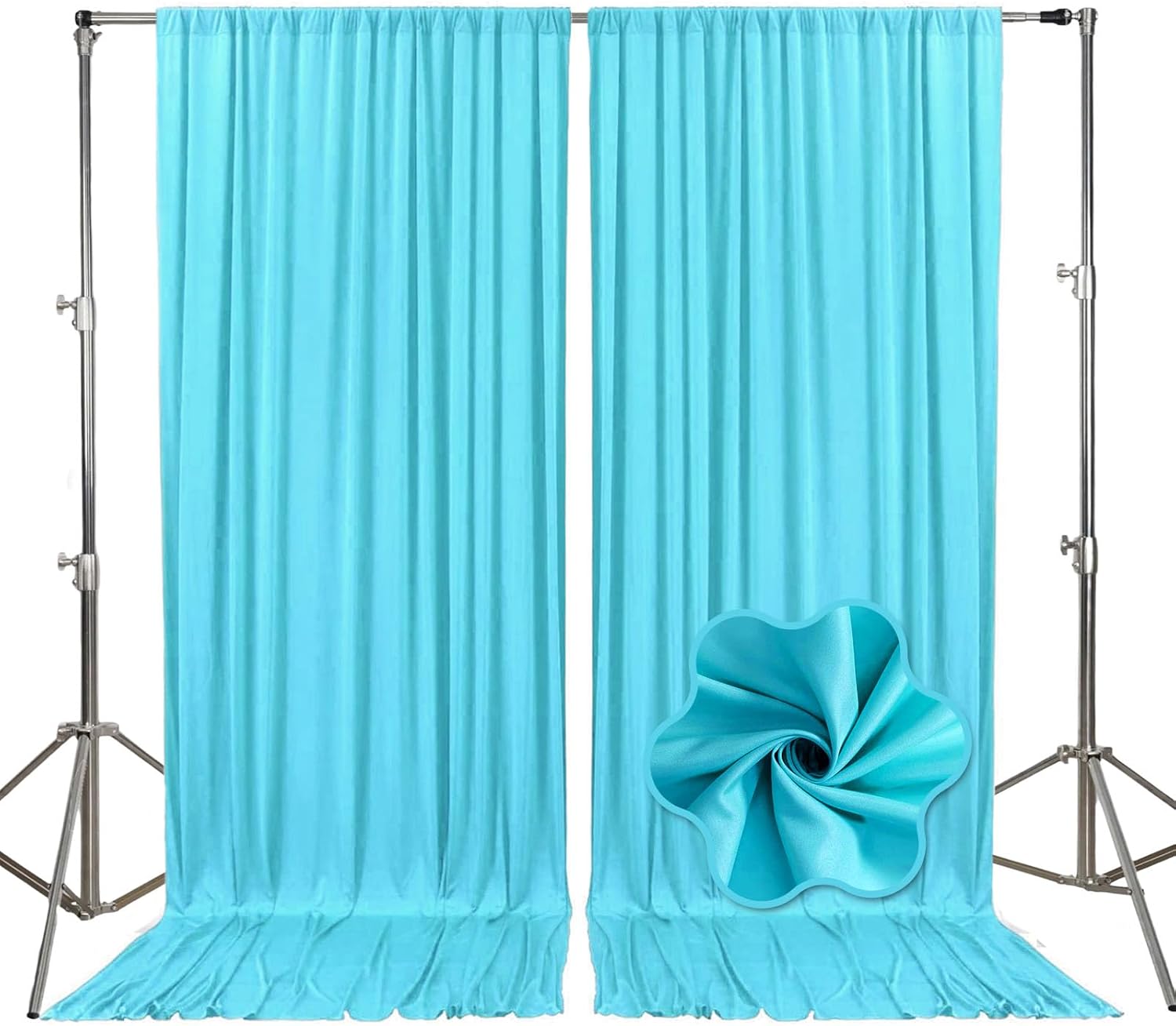 - 【Package Include】Each pack contains 2 panels of fabric shiny satin backdrop curtains. Each backdrop measures 10 feet x 10 feet (60 inches x 120 inches). There is a rod pocket designed on the top of the curtain, allowing you to easily hang it on a pipe or background stand. Tips: ONLY the backdrop curtains, no include a stand.