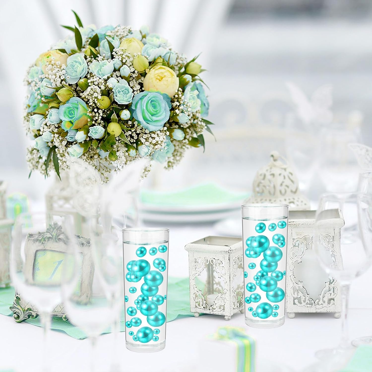 100PCS Teal Faux Pearls Beads for Centerpiece Vases, Vase Filler Faux Pearls, No Holes Filler Beads for Party Anniversary Birthday Wedding Table Decor, 14/20/30mm