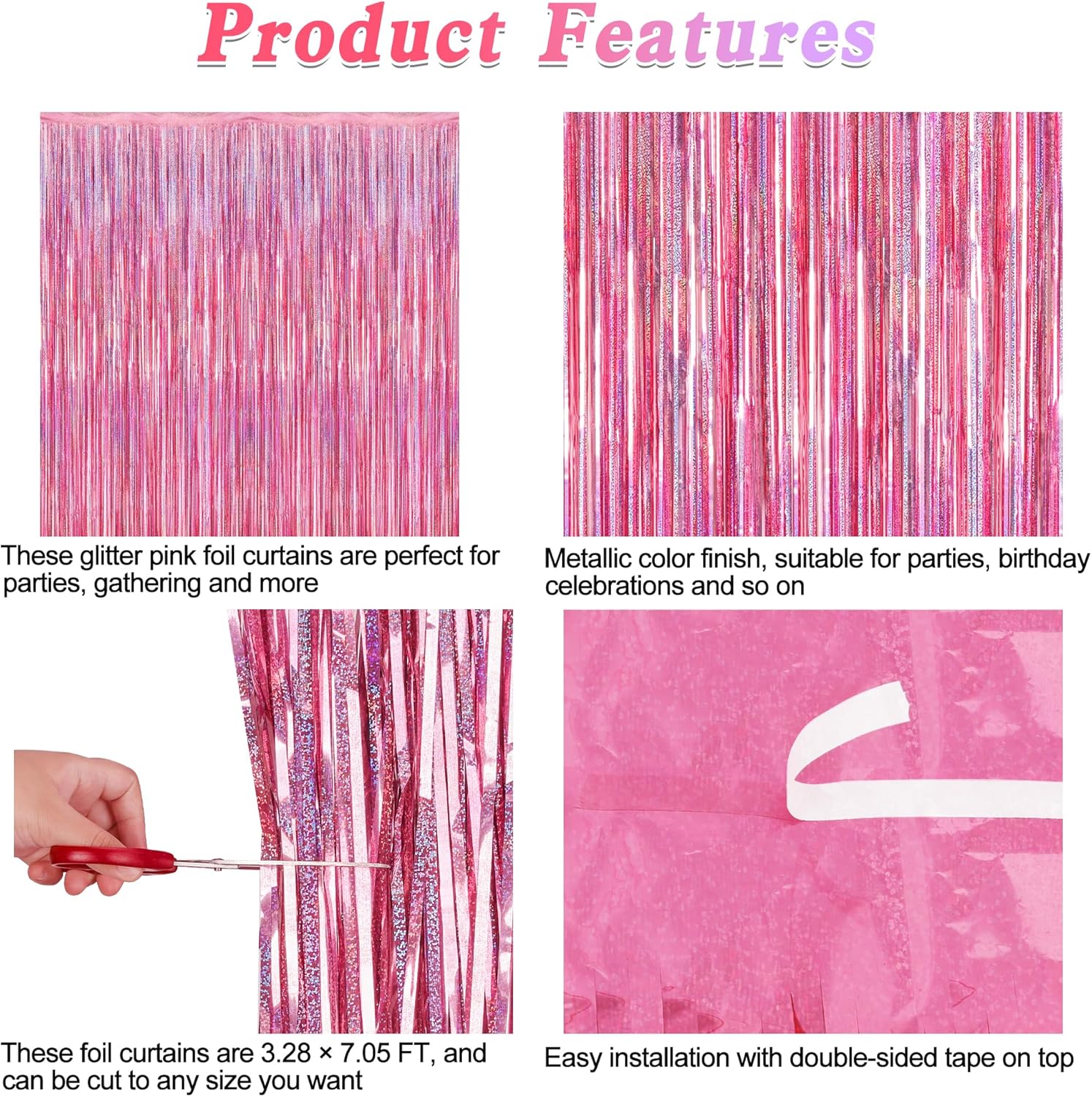- Material: These pink foil curtains are made of 23 Ξm PET material, which is tear-resistant and colorfast, suitable for your birthday photo booth props.