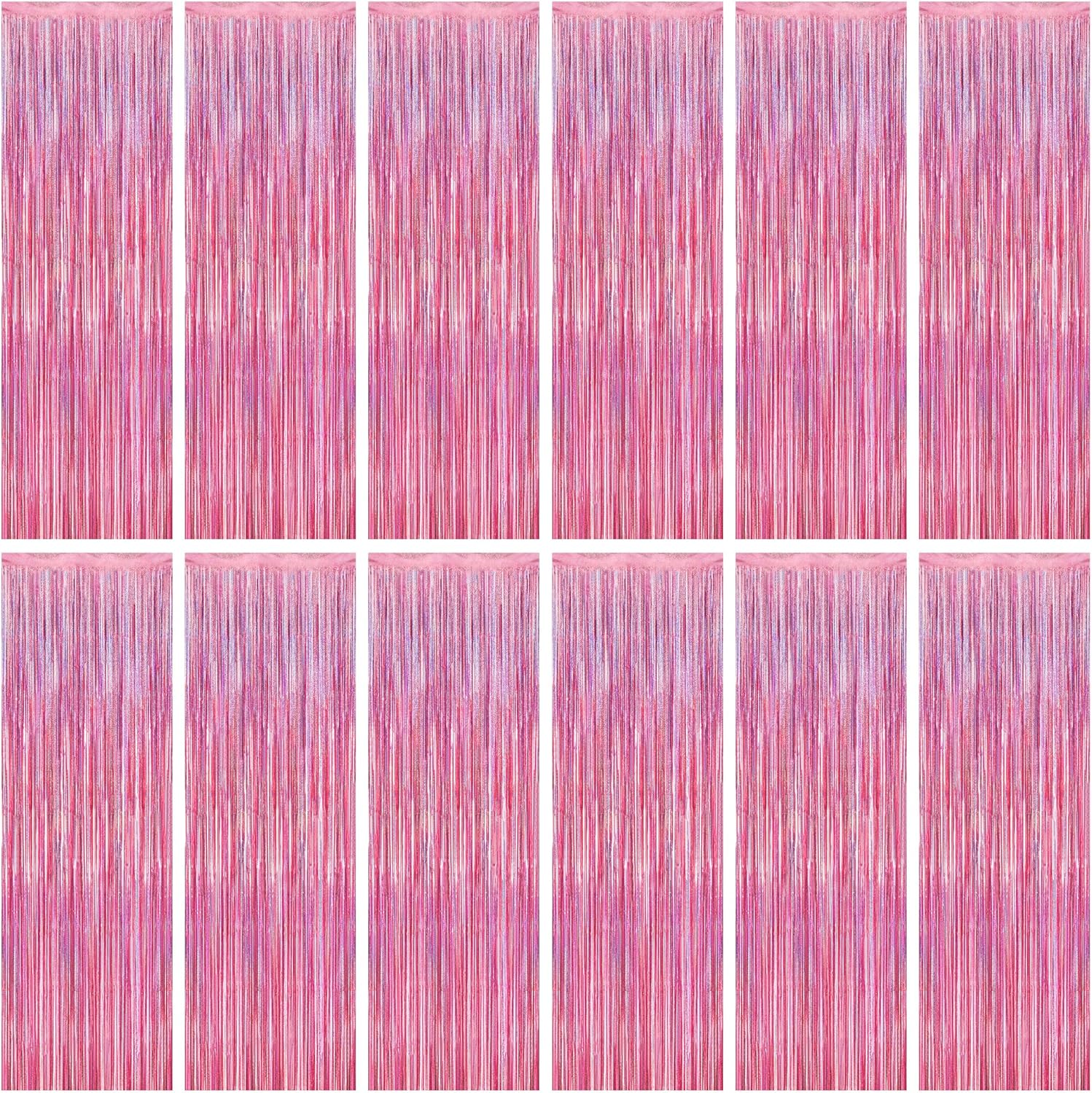 12 Pack Pink Backdrop, 3.28 FT x 7.05 FT Foil Streamers, Metallic Glitter Backdrop Pink Tinsel Fringe Curtains Party Streamers, Pink Birthday Party Decorations Photo Booth Props