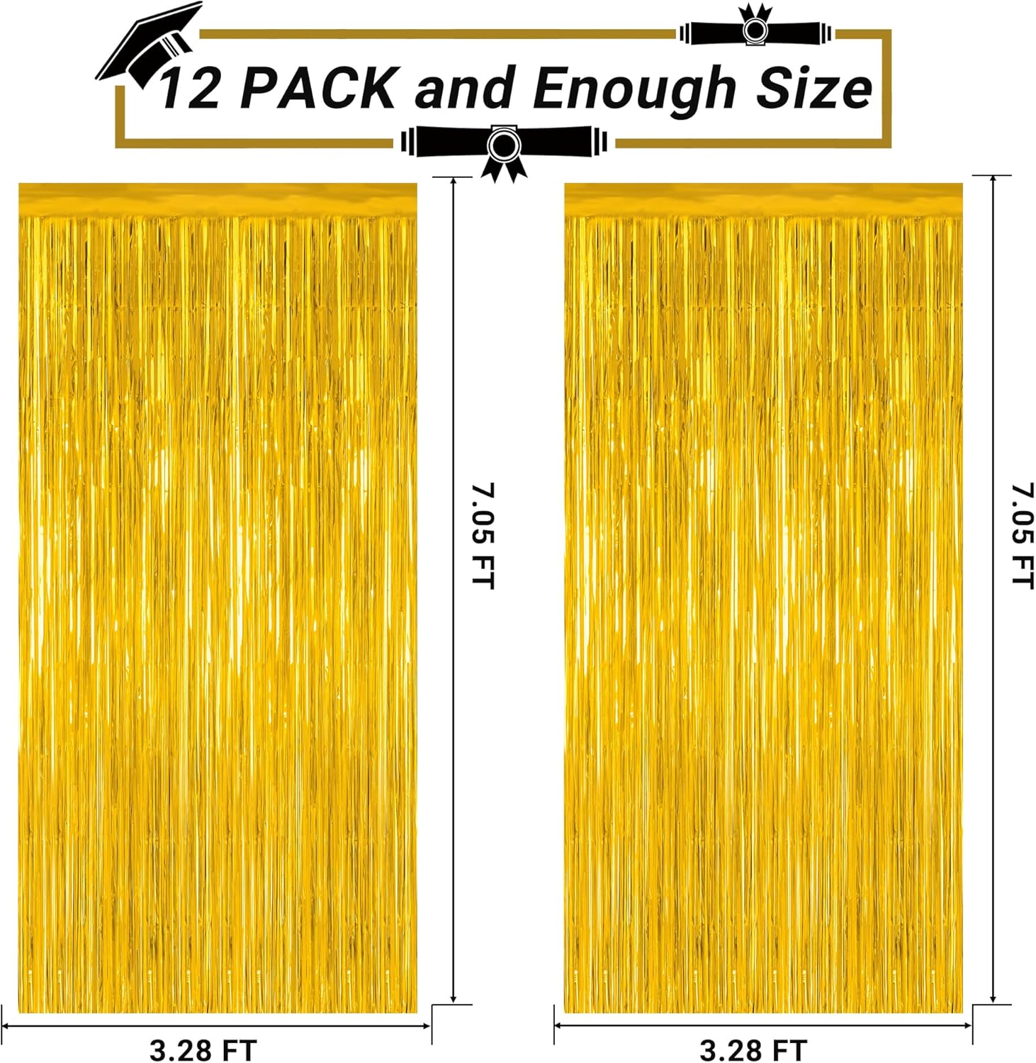 12 Pack 2025 Graduation Decorations, 3.28 FT x 7.05 FT Gold Backdrop Curtains, Metallic Class of 2025 Backdrop Fringe Curtains Foil Streamer, Gold Grad Decorations 2025 Party Supplies