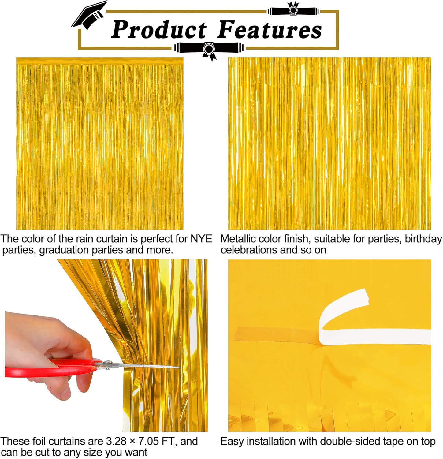 - Use Application: These gold curtains are suitable for graduation parties, Mardi Gras, St. Patrick's Day, or any other party event, adding sparkle to the celebratory moments.
