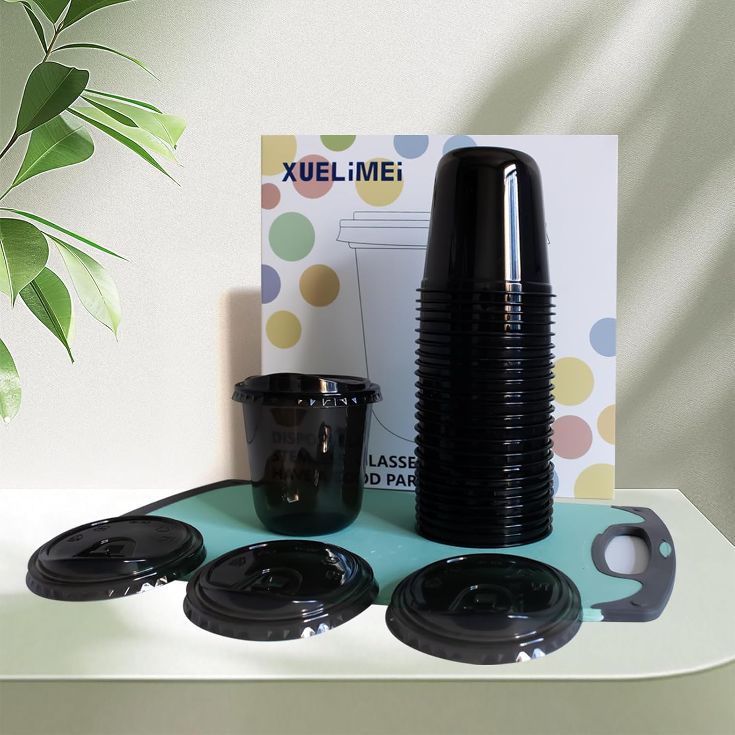 16oz Disposable Stemless Glasses With Strawless Sip Lids,PET Disposable Drinking Cups,Clear Plastic Wine Glasses for Parties Birthday,Wedding,Meeting,Christmas Party Supplies (50, Black)