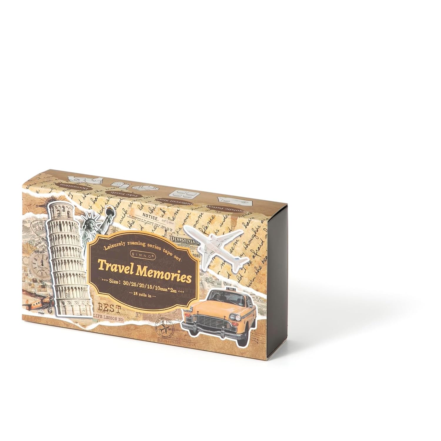 - Add a little wanderlust to your creative projects with our travel-themed washi tape! It has charming designs of iconic landmarks, vintage suitcases, airplanes, maps, and postage stamps. This decorative tape is perfect for scrapbooking, journaling, bullet journals, or DIY crafts. The delicate, semi-transparent texture allows for easy layering and blending, while the easy-to-tear design ensures hassle-free use.