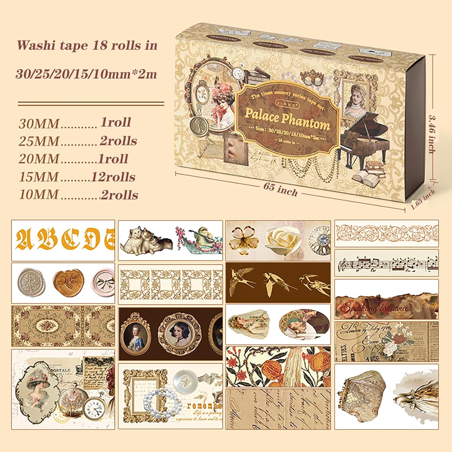 18 Rolls Vintage Victorian Washi Tape Set Journal Tape for Crafts and Journaling DIY Scrapbooking Supplies washi Tape for Scrapbooking Decorative Tape