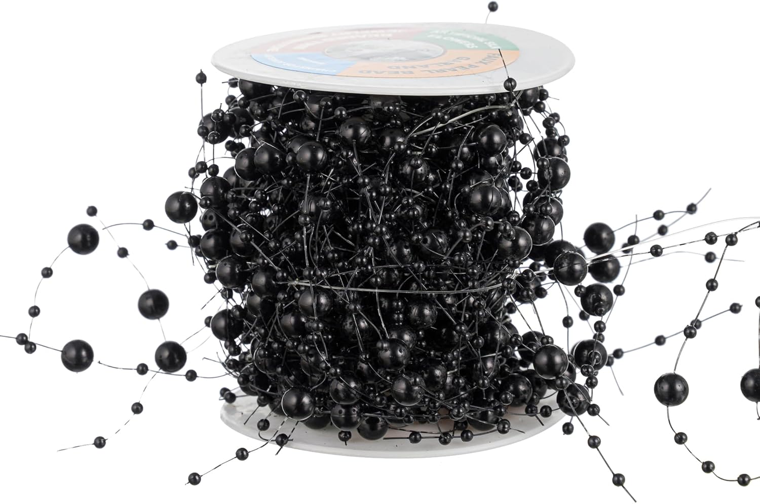 13Feet Pearl String Spool Roll for Floating Candles Faux Pearls Strands Garland for Vase Filler Wedding Centerpiece Christmas Table Decor (Black)