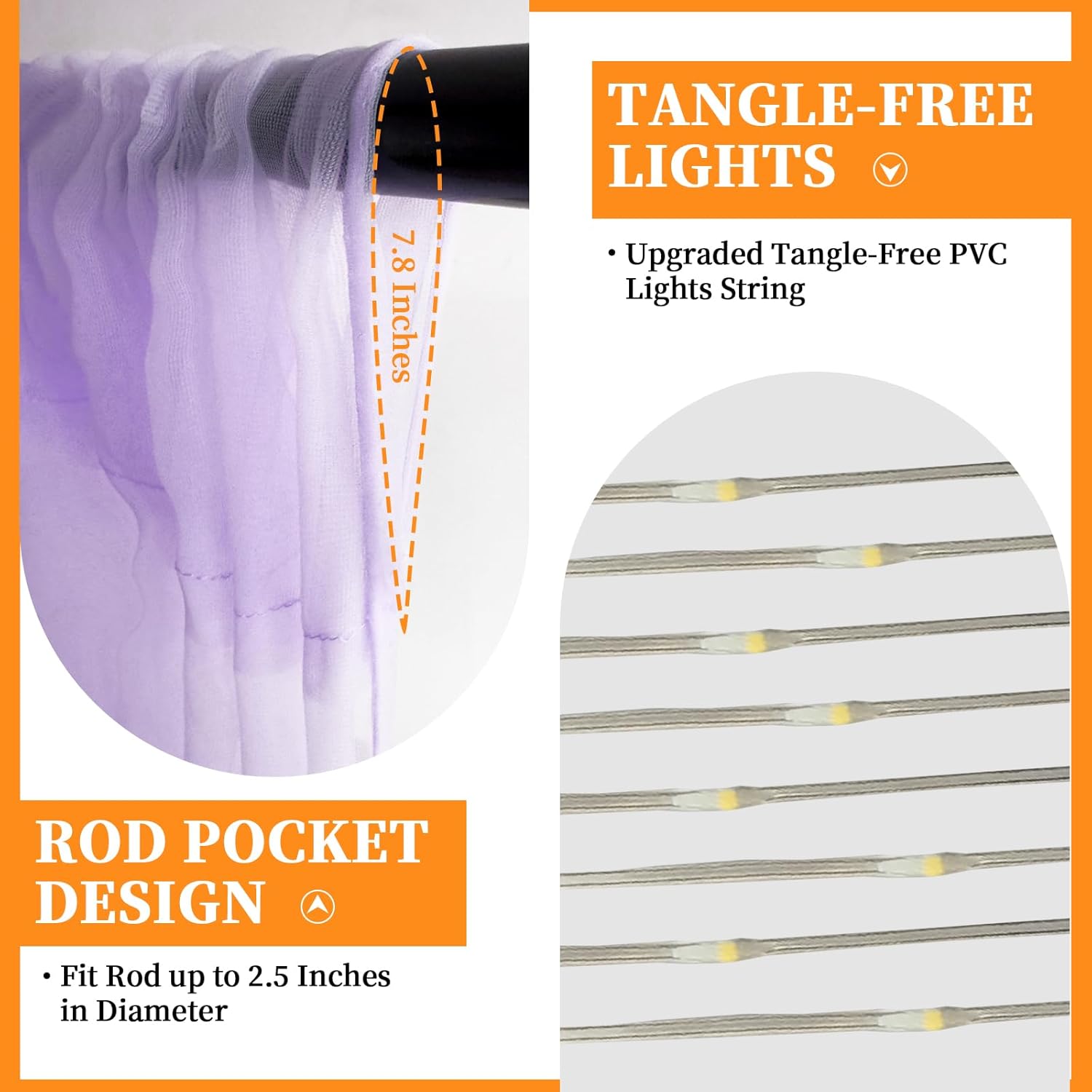 - Easy Setup & Reusable Decor: Designed for convenience, the tulle curtain features a 2.5-inch rod pocket for easy hanging on pipes or stands. Includes 12 Transparent clips make the lights simple to hang and secure to the backdrop, adding a warm, inviting glow. Reusable and easy to store, this set is perfect for multiple events