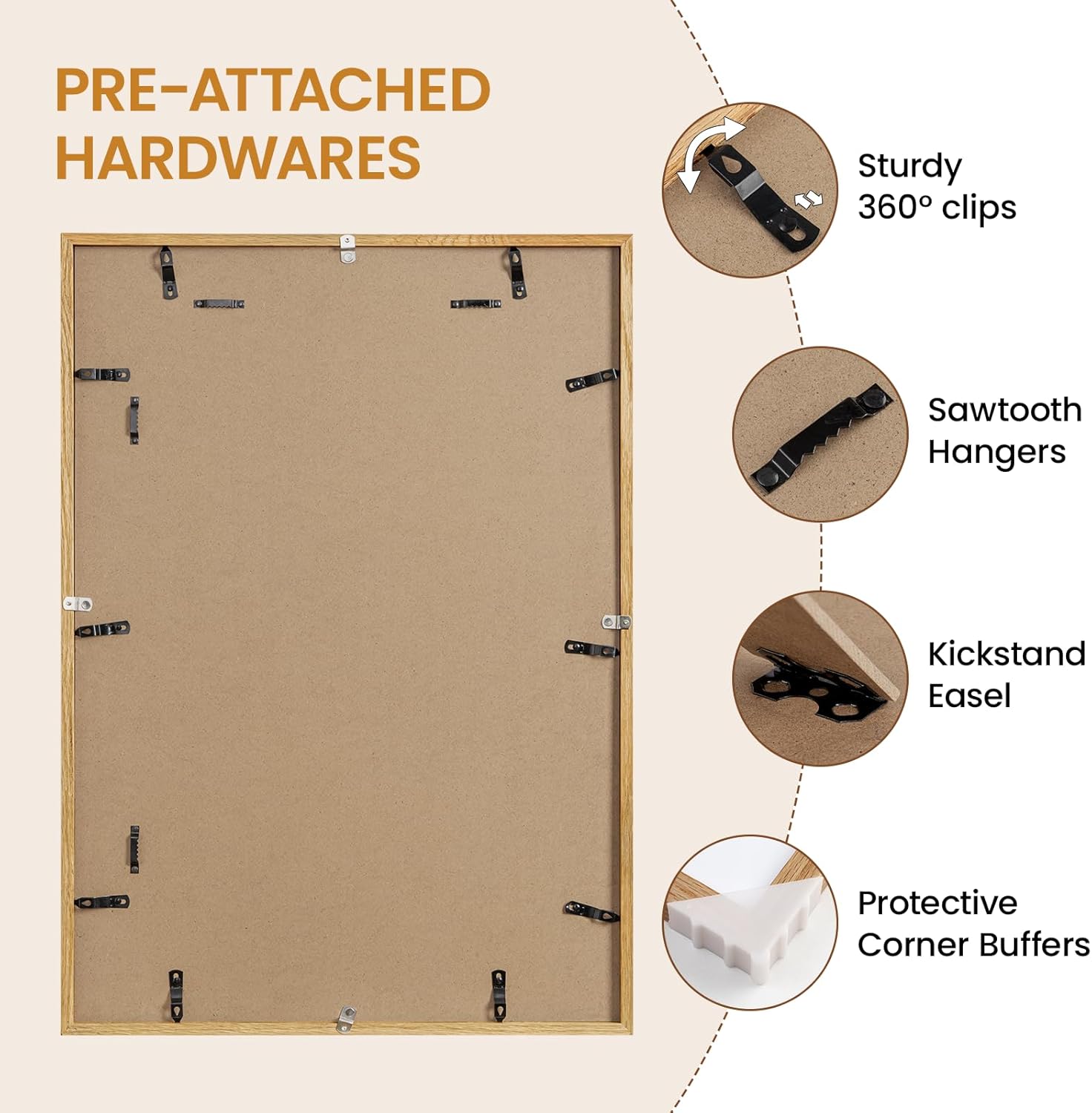 - 【Perfect Decoration】19"x27" oak wood picture frames are suitable for homes,bedrooms,dining rooms,offices, game rooms and studies.Showcase your cherished moments with our 19 by 27 frame