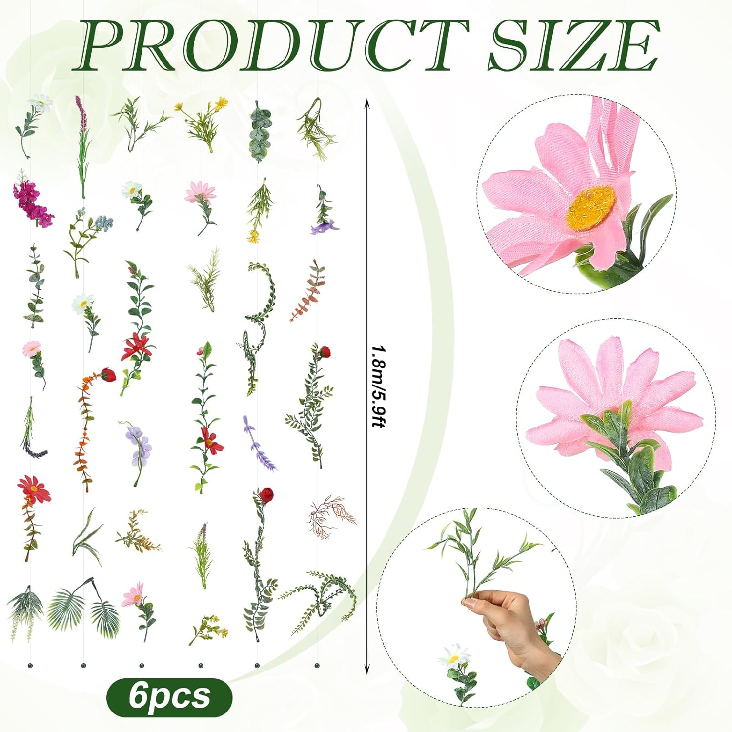- Generous Size: each artificial wildflower garland measures about 5.9 ft /1.8 m with transparent silk thread, providing ample coverage for various decorative needs; Whether draped across mantels, twisted around banisters, or hung as backdrops
