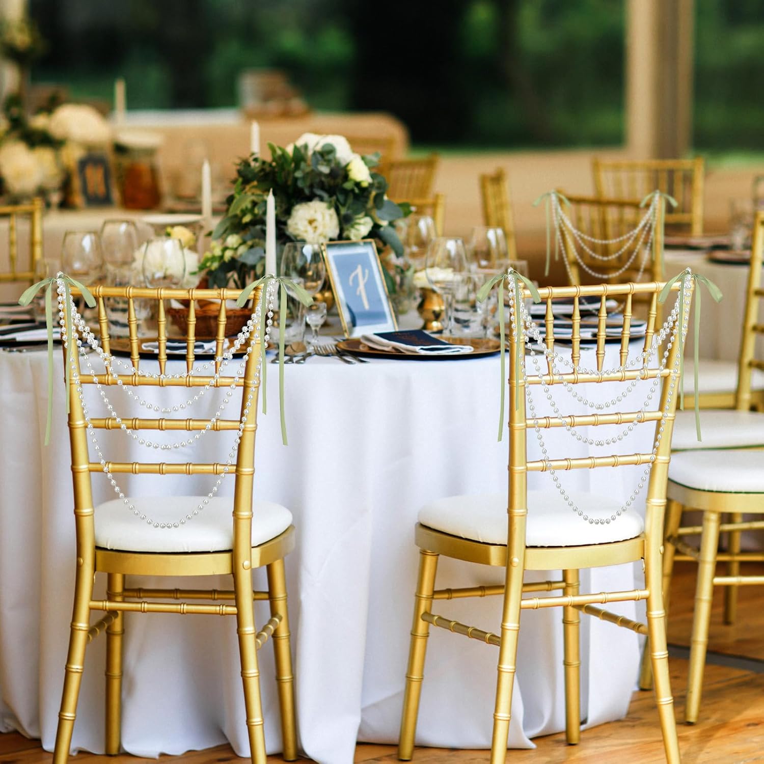- Sufficient Quantity for Versatile Use: this package includes 16 wedding chair back garland sash with pre tied gray green bows, providing ample quantity for most applications; Whether you're decorating for a wedding, party, or special event, the large quantity allows for creative arrangements, such as pearl chair back garlands or beautiful centerpieces, ensuring your decor is visually appealing and eye catching