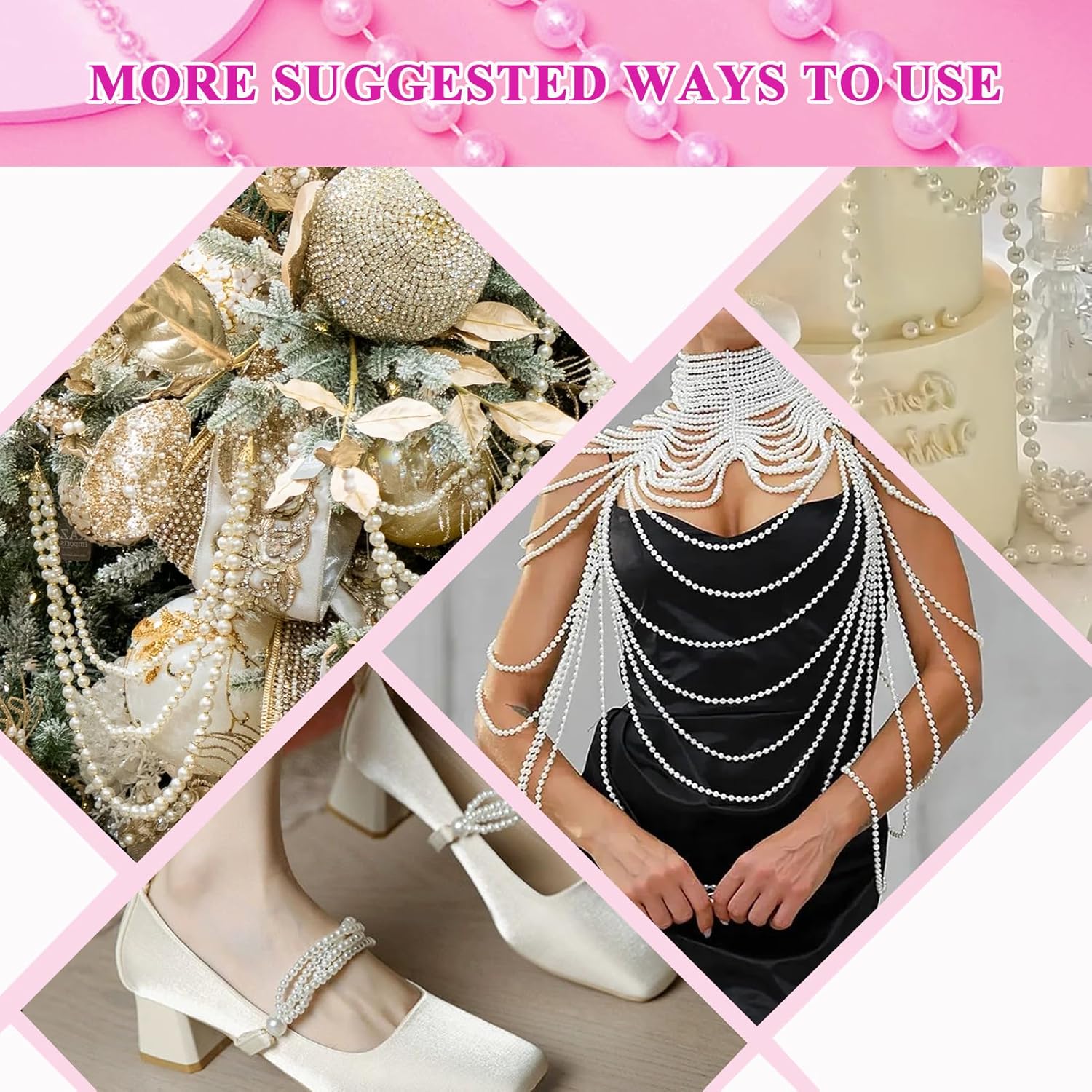 - Wide Applications: these faux pearl string garland are widely used for decorating porch flowers, favors, pew bows, wedding decorations, table centerpieces, dessert tables, home decor, backdrops, frames trimming, candles, lanterns, wreaths, mantles, dresses and hair embellishments, or any other craft art project