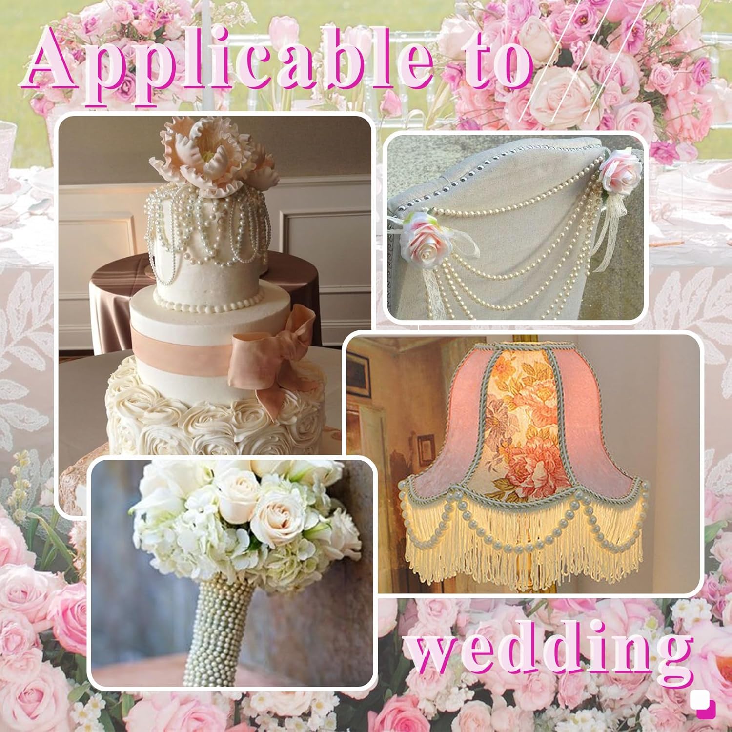 - Wide Applications: these faux pearl string garland are widely used for decorating porch flowers, favors, pew bows, wedding decorations, table centerpieces, dessert tables, home decor, backdrops, frames trimming, candles, lanterns, wreaths, mantles, dresses and hair embellishments, or any other craft art project