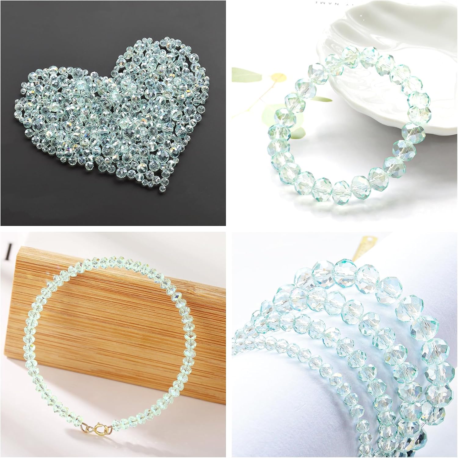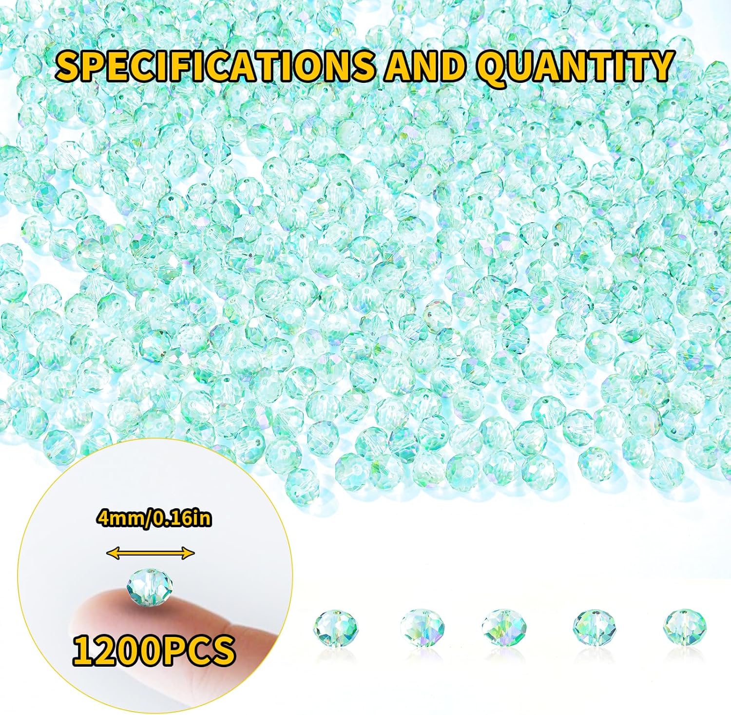 1200Pcs 4mm Crystal Glass Beads for Jewelry Making Beads for Bracelets Necklace Pendants Making Supplies(Light Blue Green)