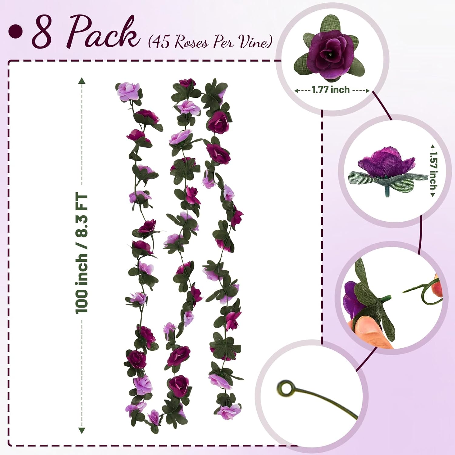 - Easy Installation & Versatile Use: Lightweight and flexible, our rose garland is easy to install. Each vine includes a hook design, making it simple to hang or bend to fit your needs. Perfect for decorating indoors or outdoors—on walls, windows, and garden arches—these versatile flower garlands enhance any setting.