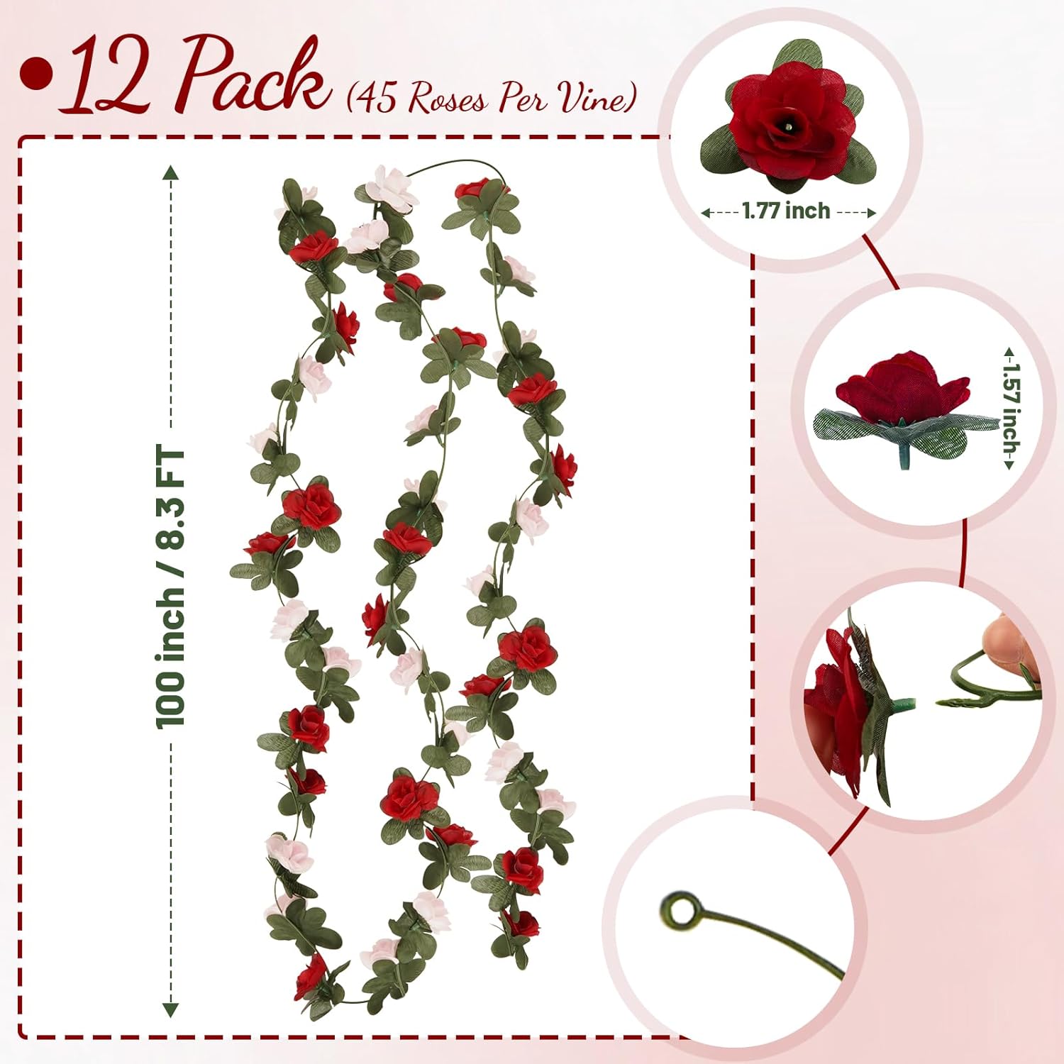 - Create a Romantic Atmosphere with Rose Garland: Enhance any space with our 2/8/12-pack rose garlands, each 8.2 feet long and featuring 45 lifelike roses per vine. Perfect for weddings, birthday parties, Christmas, bedrooms, or background walls, these rose garlands for decoration add an elegant touch to your special occasions.