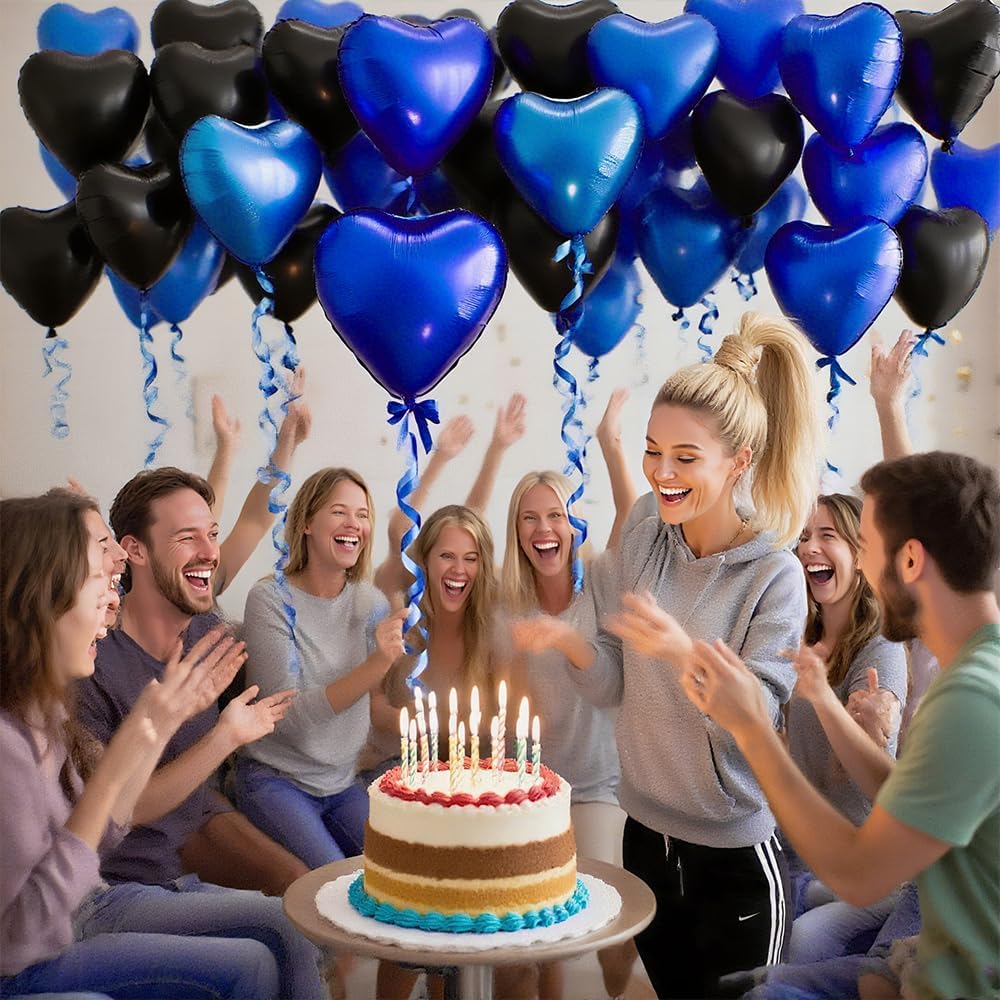 - Package:12 PCS 18 inches Black Blue heart foil balloons