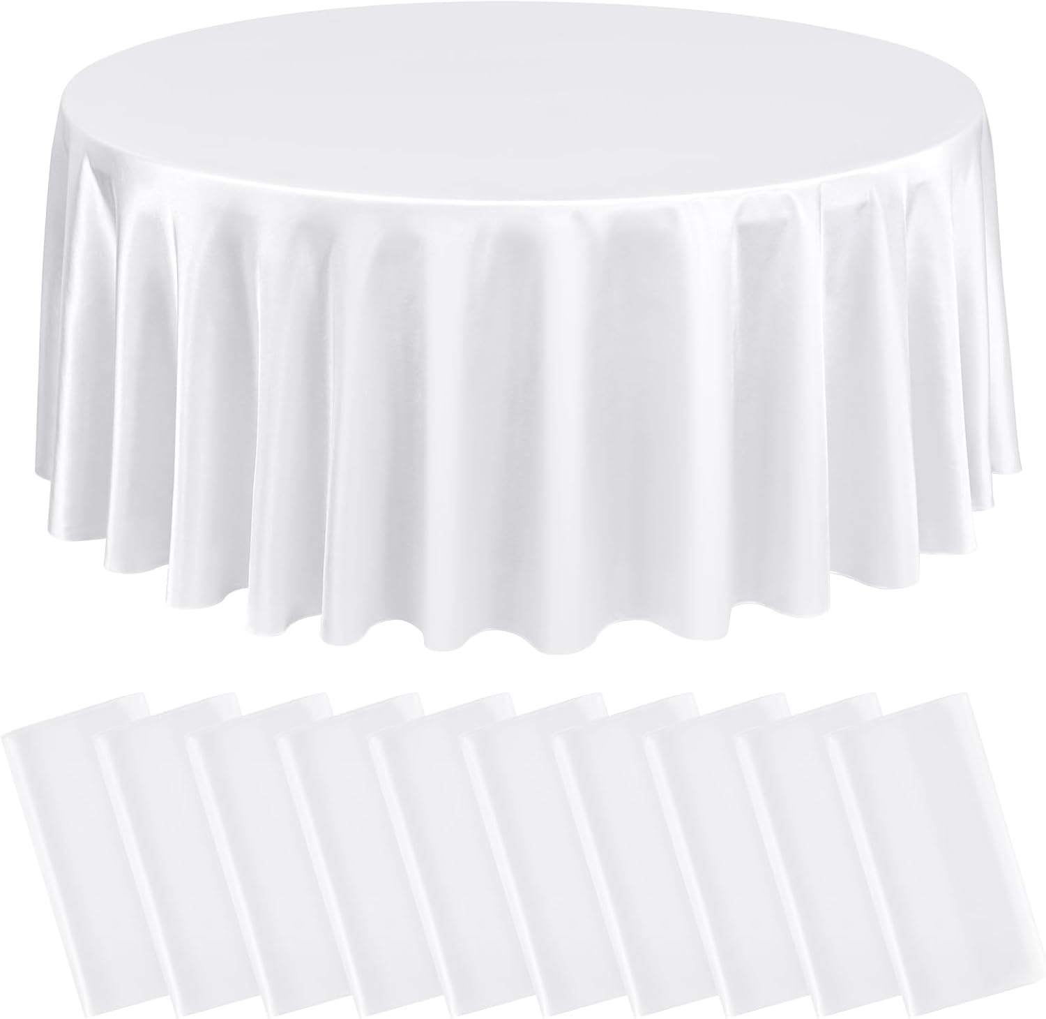 10 Packs Satin Tablecloth 120 Inch White Round Table Cloth Silk Tablecloth Smooth Fabric Overlay Satin Table Cover Decoration for Wedding Party Banquet Events