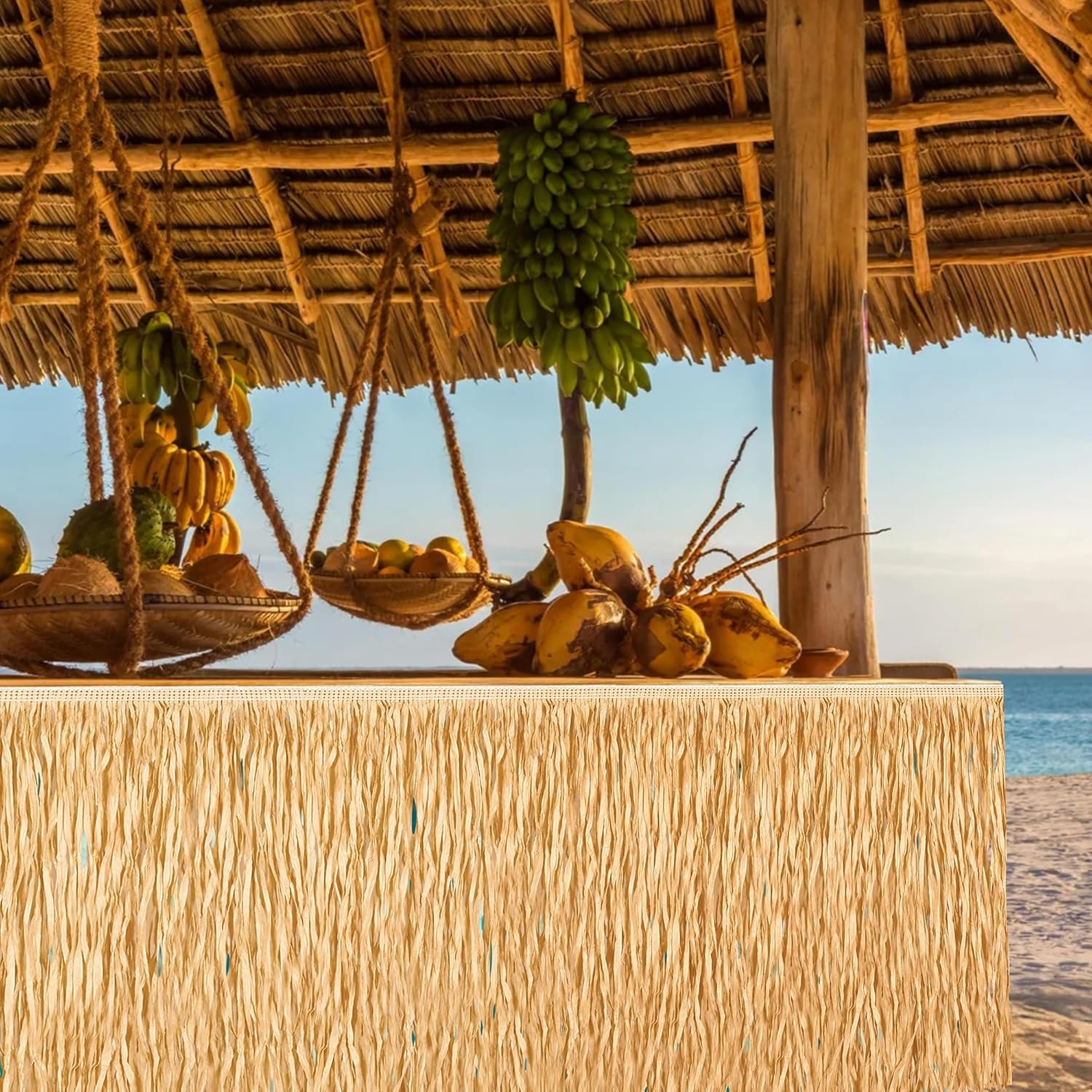 Fovths 2 Packs Luau Grass Table Skirt Fringe Dark Straw Grass Skirt 108 x 30 Inch Hibiscus Hawaiian Table Skirts Rectangle Tropical Luau Party Decorations for Hawaiian Decorations