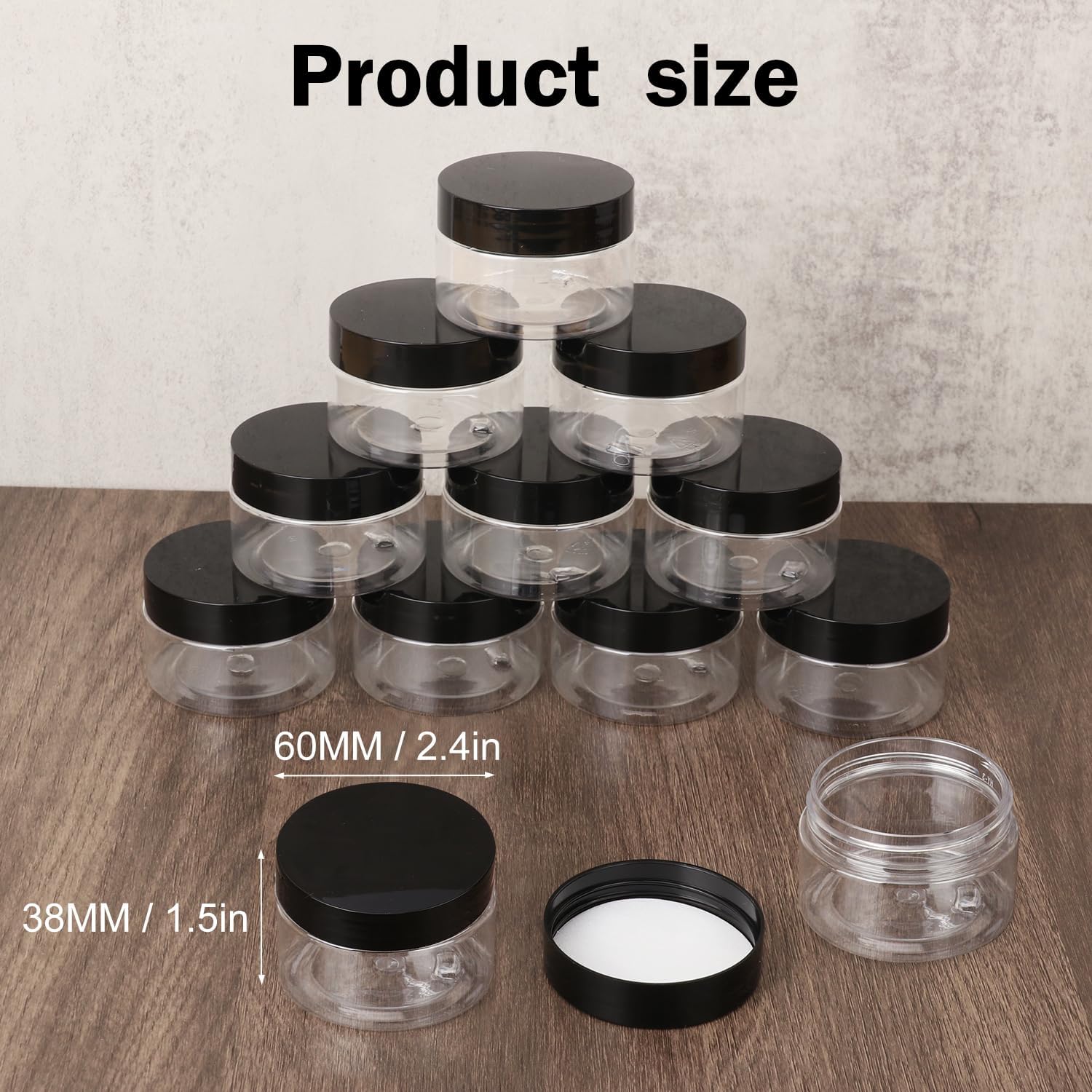 - 【Travel-Friendly Design】: Compact and leakproof, these 2 oz cosmetic containers with black lids are ideal for travel. Store your favorite lotions, creams, and serums without worrying about spills or leaks.