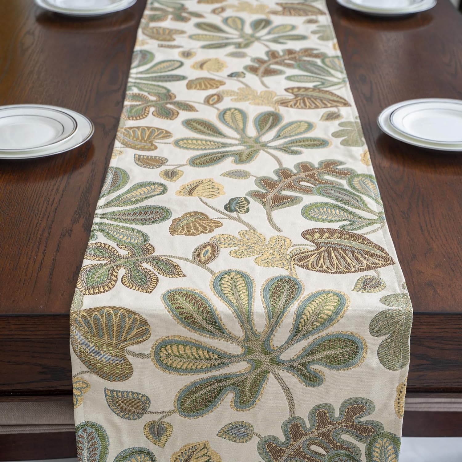 Mika Home Tropical Leaf Table Runner for Home Decor 13X72 Inches Green Brown Dining Table Decoration for Home