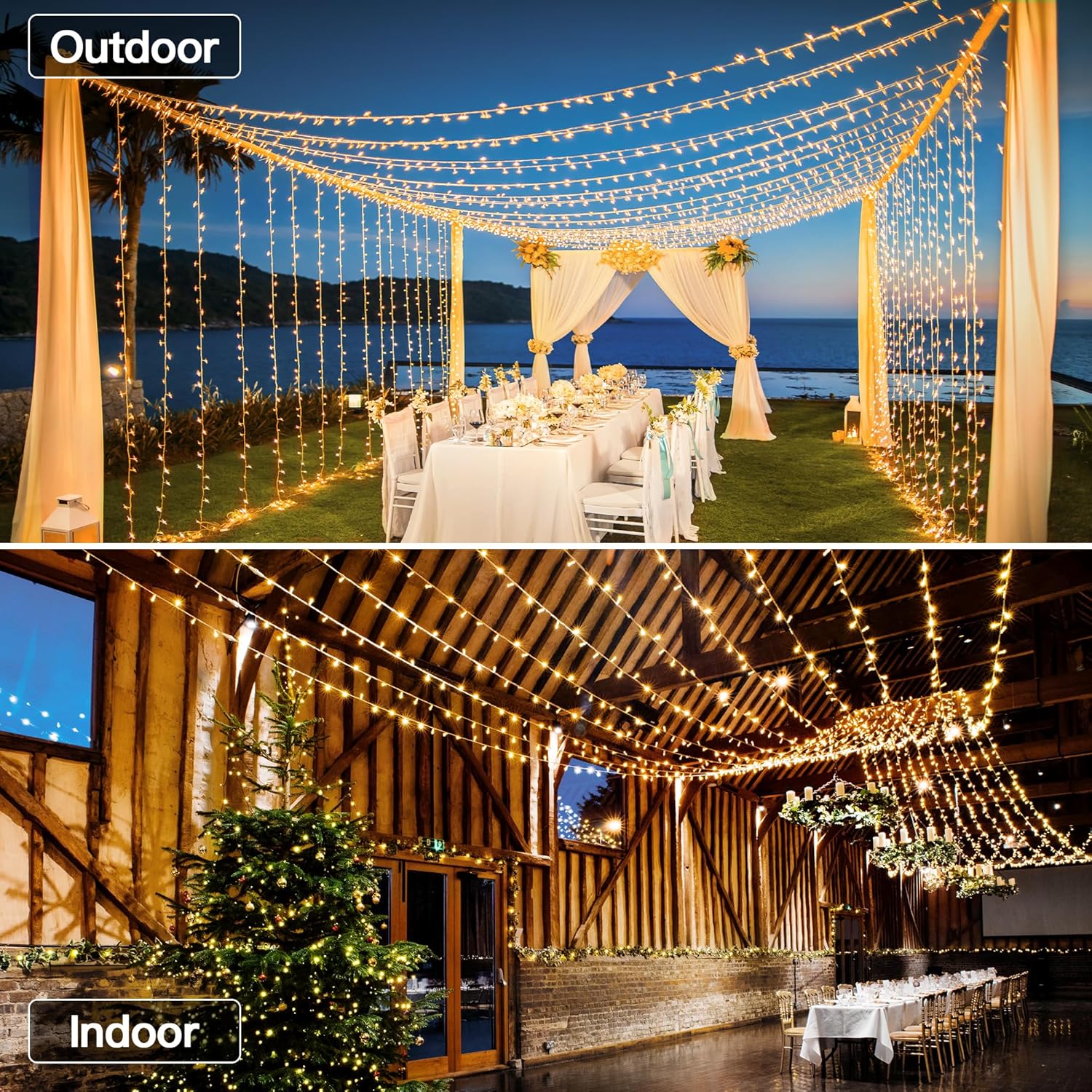 - Ultra Long 196 ft: 600 LEDs, plus a 10-foot extension cord! Perfect for indoor and outdoor useโdecorate your wedding, patio, garden, Christmas tree, parties; Create a magical holiday atmosphere effortlessly